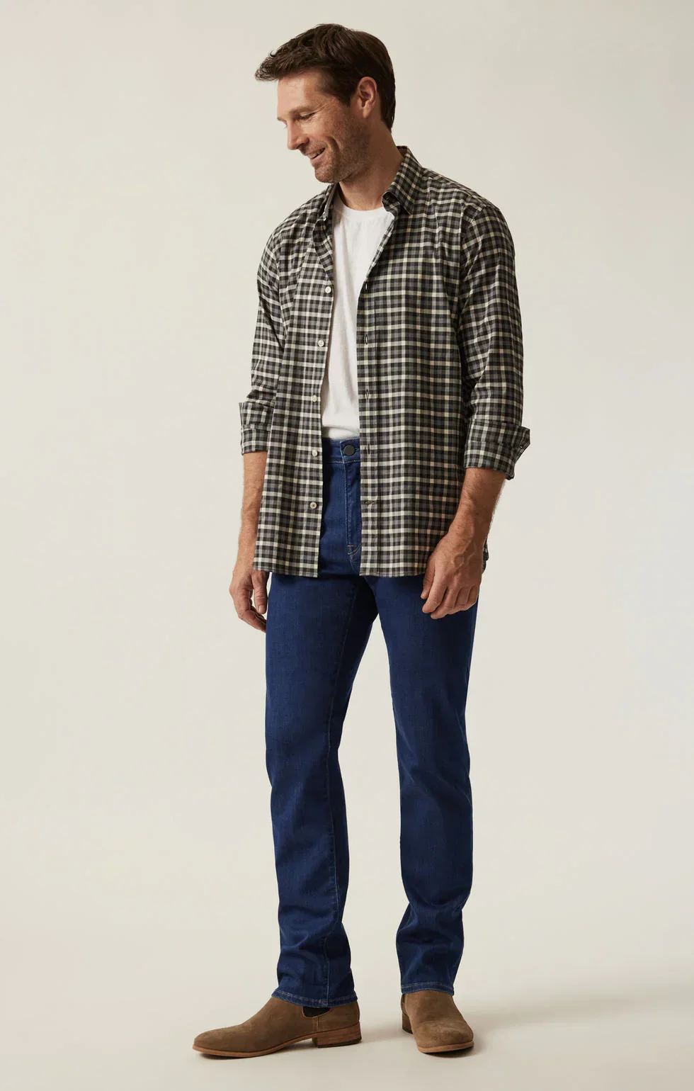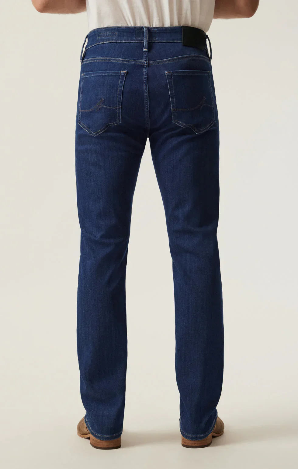 Conçue avec l’apparence et la sensation d’un denim de luxe, cette paire est fabriquée à partir d’un denim de qualité supérieure qui contient une proportion plus élevée de coton et de viscose pour une douceur et une flexibilité supérieures. Dotée d’une jambe droite classique et d’une taille mi-haute confortable, cette paire est finie dans un délavage bleu foncé polyvalent.