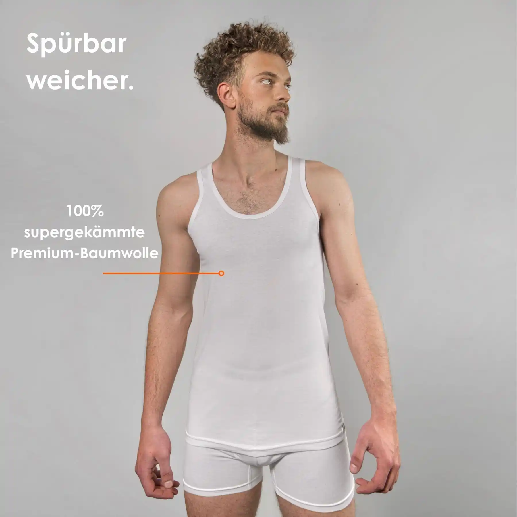 - Hochwertiger Feinripp Herren Unterhemd: Exzellente Elastizität, die sich sanft der Körperform anpasst und höchsten Tragekomfort bietet