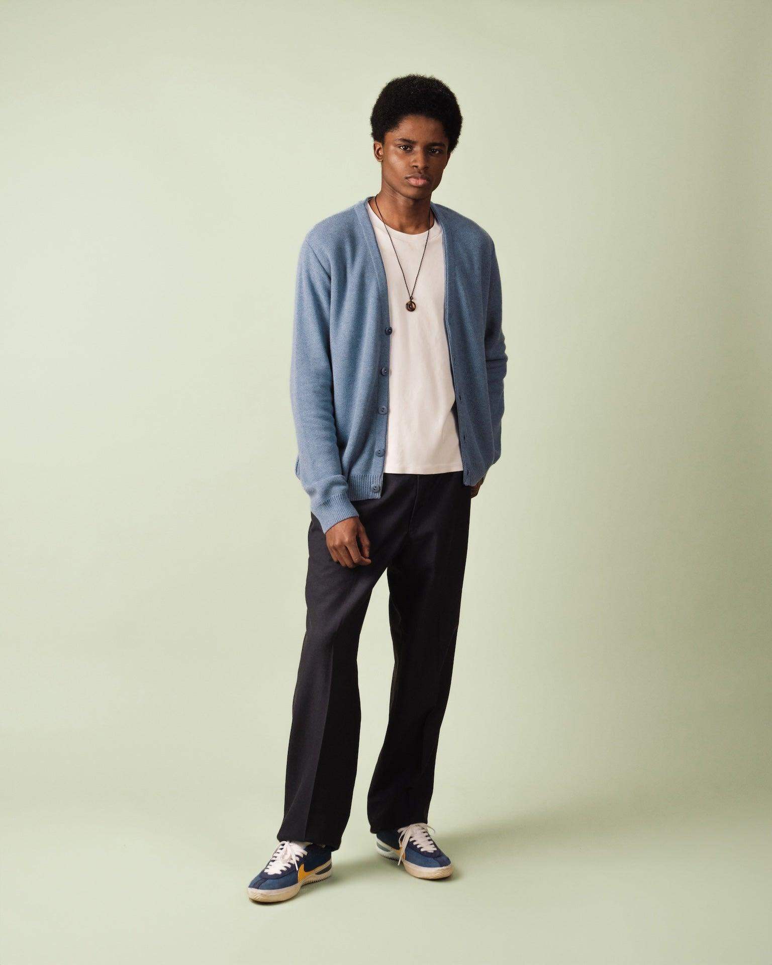 Le Cardigan AGOP en coloris Medium Indigo est une pièce emblématique de Nitto Knitwear, marque française fondée en 2022 et héritière d’un savoir-faire tricoteur depuis 1972. Confectionné à partir de 100% coton peigné labellisé OEKO-TEX Standard 100. Ce cardigan est tricoté dans l’atelier familial situé à Clamart, en région parisienne.