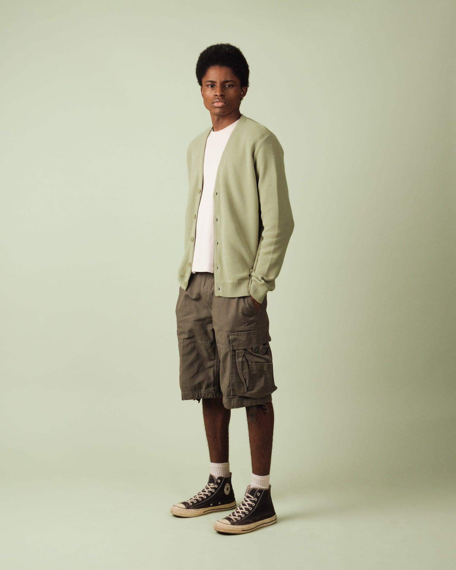 Le Cardigan AGOP en Vert Olive signé Nitto Knitwear est une réinterprétation moderne d’un classique intemporel.
