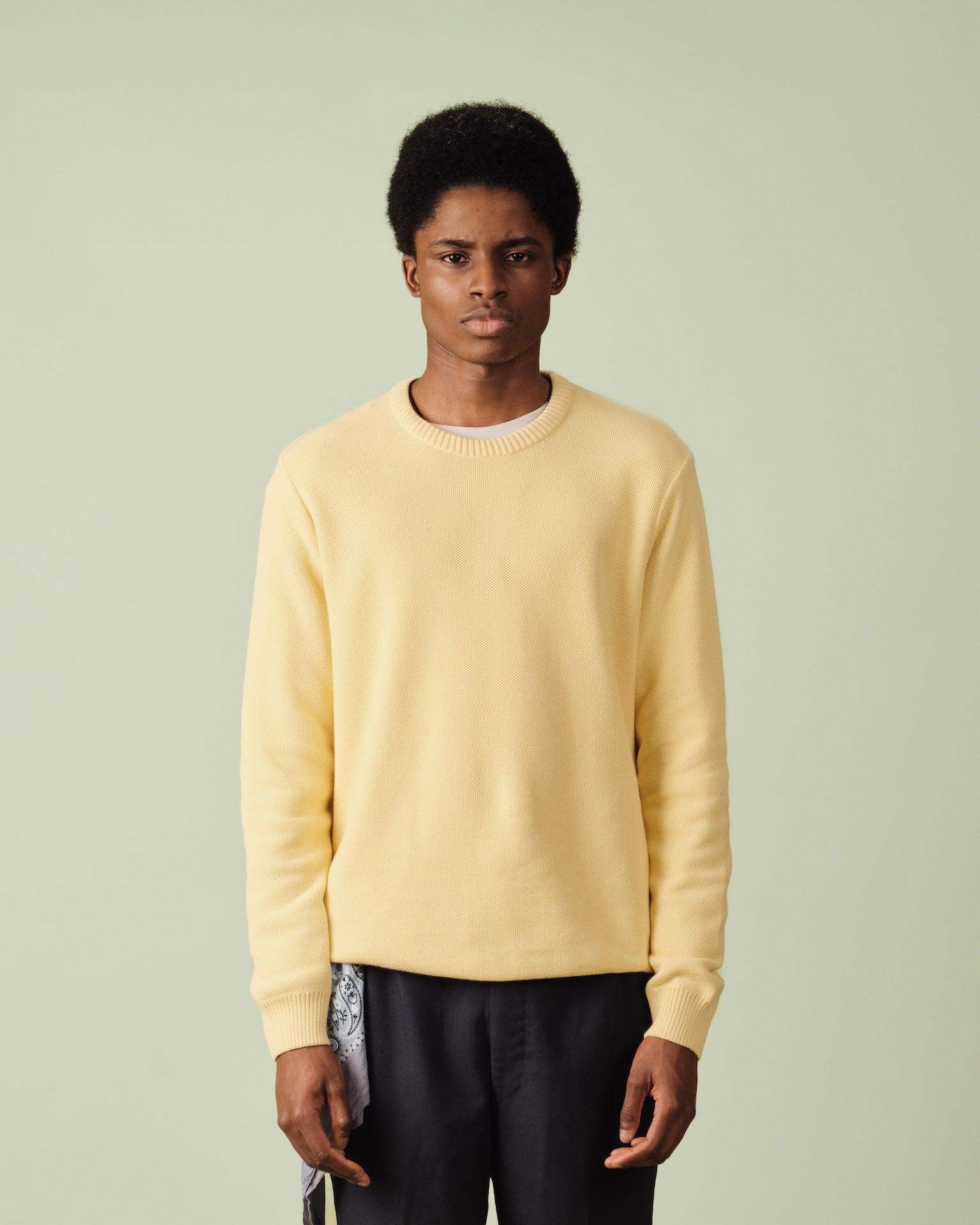 Le Pull AGOP en coloris Citron illumine la silhouette tout en douceur. Tricoté en 100% coton peigné certifié OEKO-TEX, ce modèle sans boutons à col polo revisite un classique du vestiaire avec une vraie signature. Celle de Nitto Knitwear, jeune marque française portée par un atelier familial fondé en 1972 à Clamart, près de Paris.