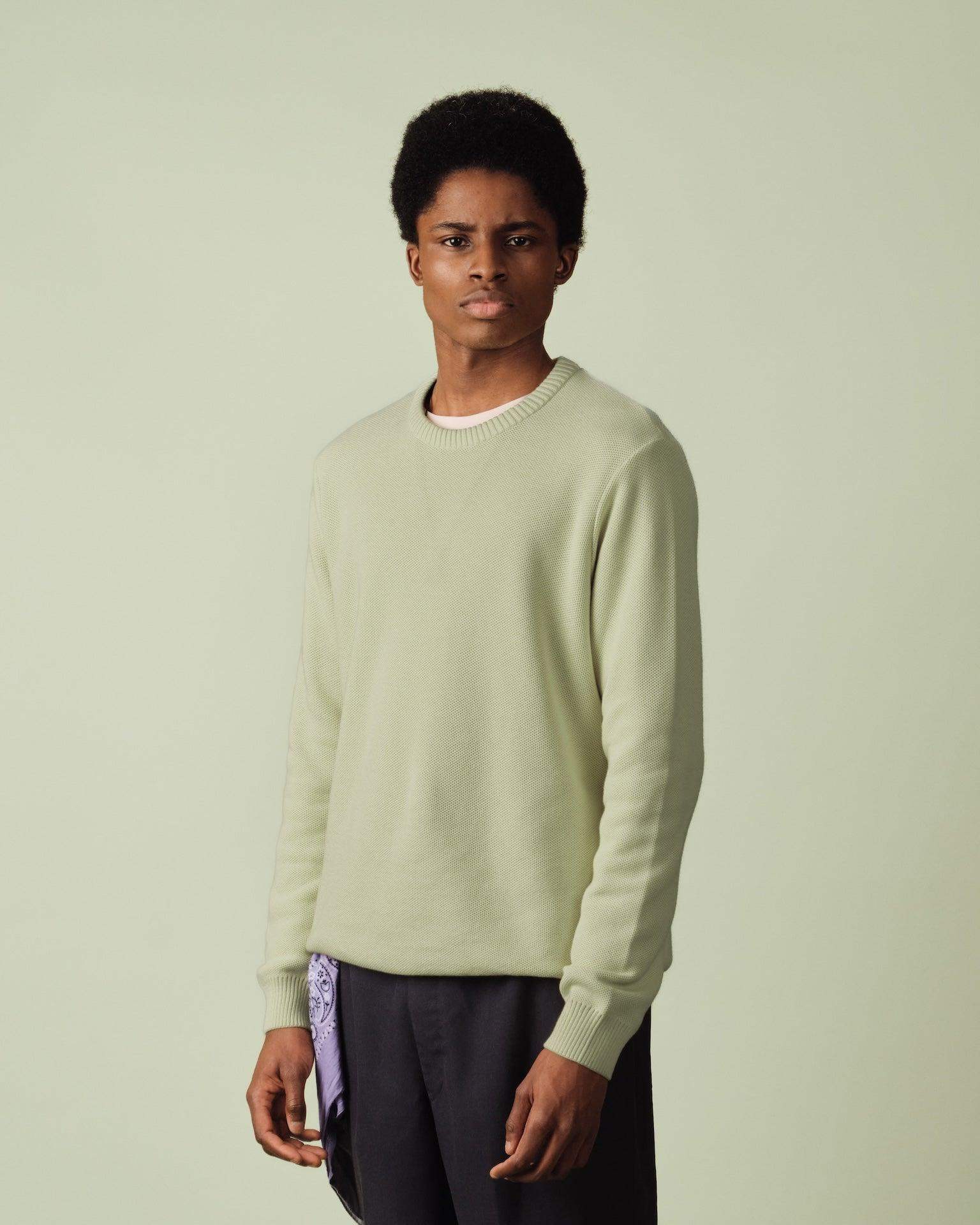 Confectionné dans leur atelier familial à Clamart, ce pull est en 100% coton peigné labellisé OEKO-TEX Standard 100. Il met à l’honneur une maille alvéolée à la fois originale et sobre, légère mais structurée.