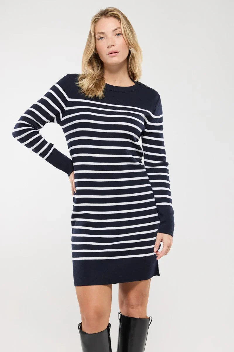 Armor-Lux – Robe rayée de laine Bénodet – Marine/Ivoire