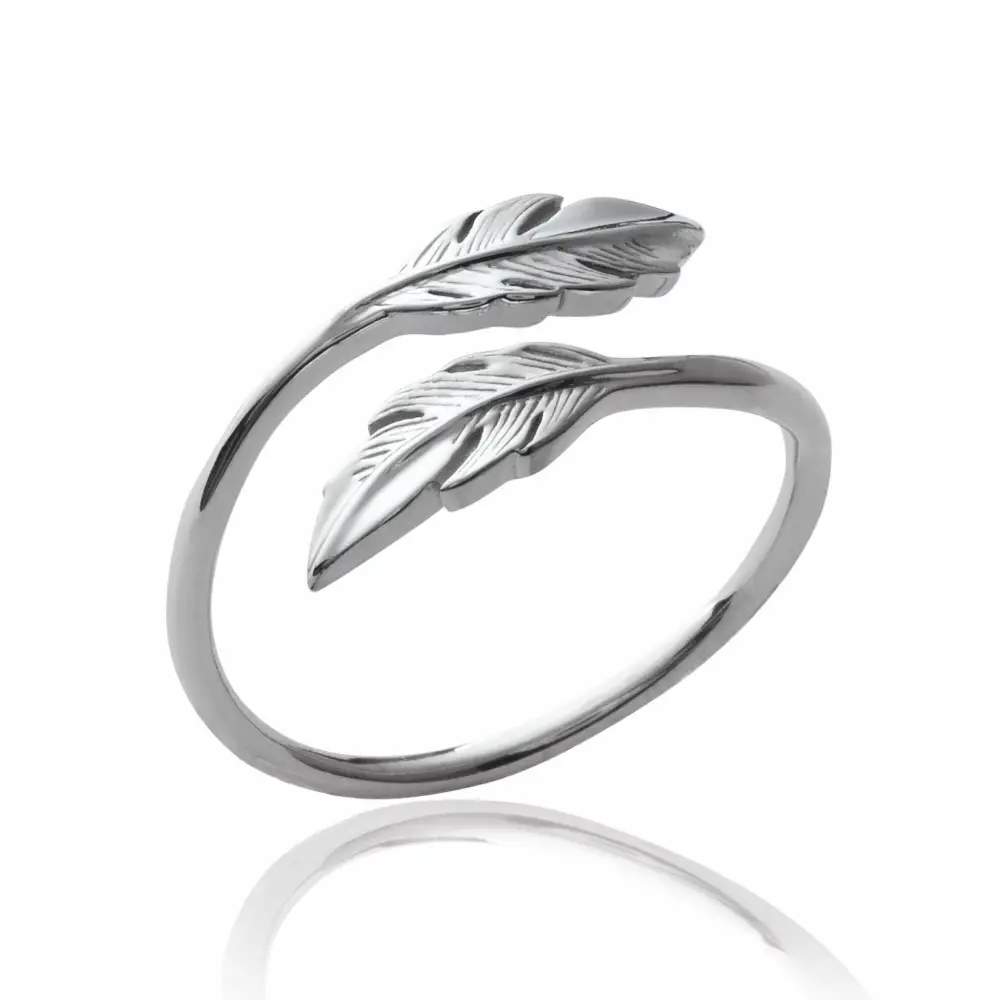 Bague ajustable plumes argent rhodié