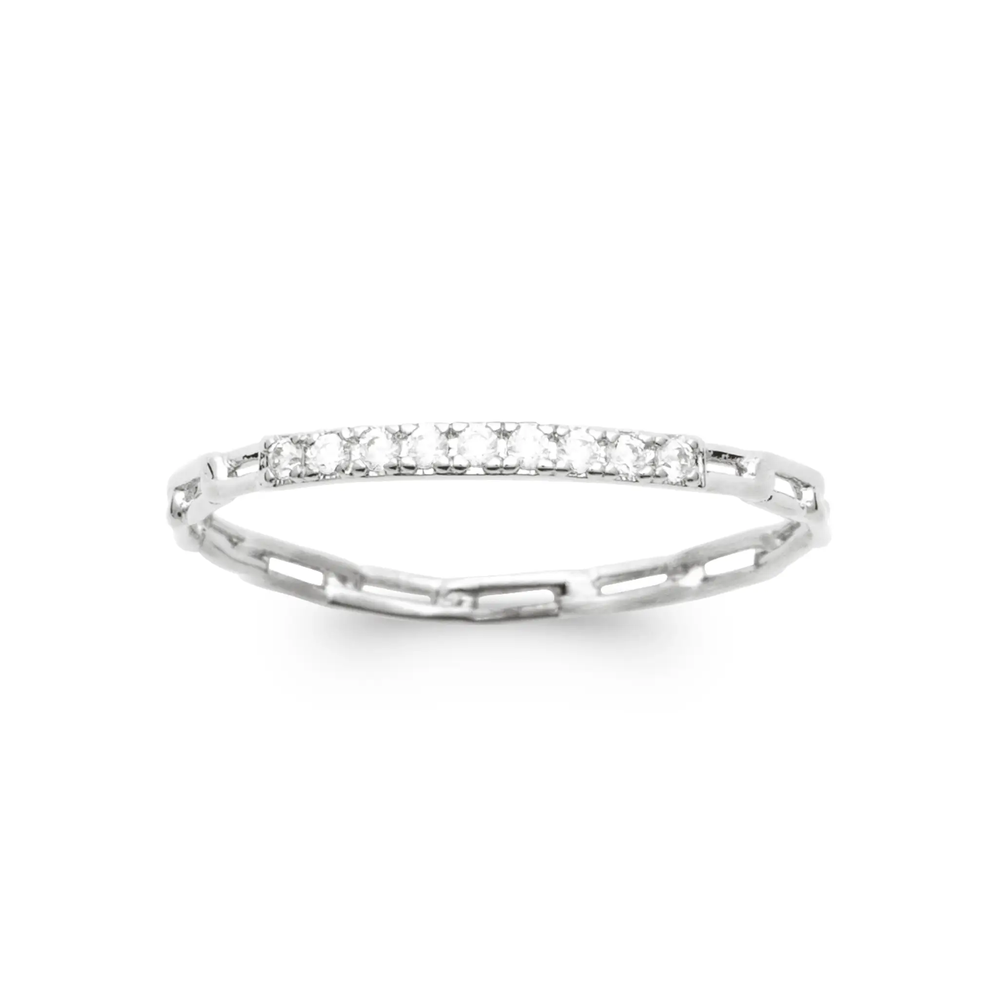 Précieuse et lumineuse, cette bague révèle une élégance délicate qui capte le regard avec subtilité. Son éclat raffiné évoque une féminité sensible, attentive aux détails qui font la différence et aux bijoux qui accompagnent les émotions avec douceur. L’anneau fin se pare d’un microsertissage de fins zircons, dessinant une ligne scintillante et harmonieuse. Chaque pierre s’inscrit avec précision, offrant un rendu délicat et équilibré, à la fois moderne et intemporel, qui habille la main sans excès. Réalisée en argent 925 rhodié, la bague présente une brillance durable et une belle résistance à l’oxydation. Les zircons, soigneusement microsertis, soulignent la qualité…