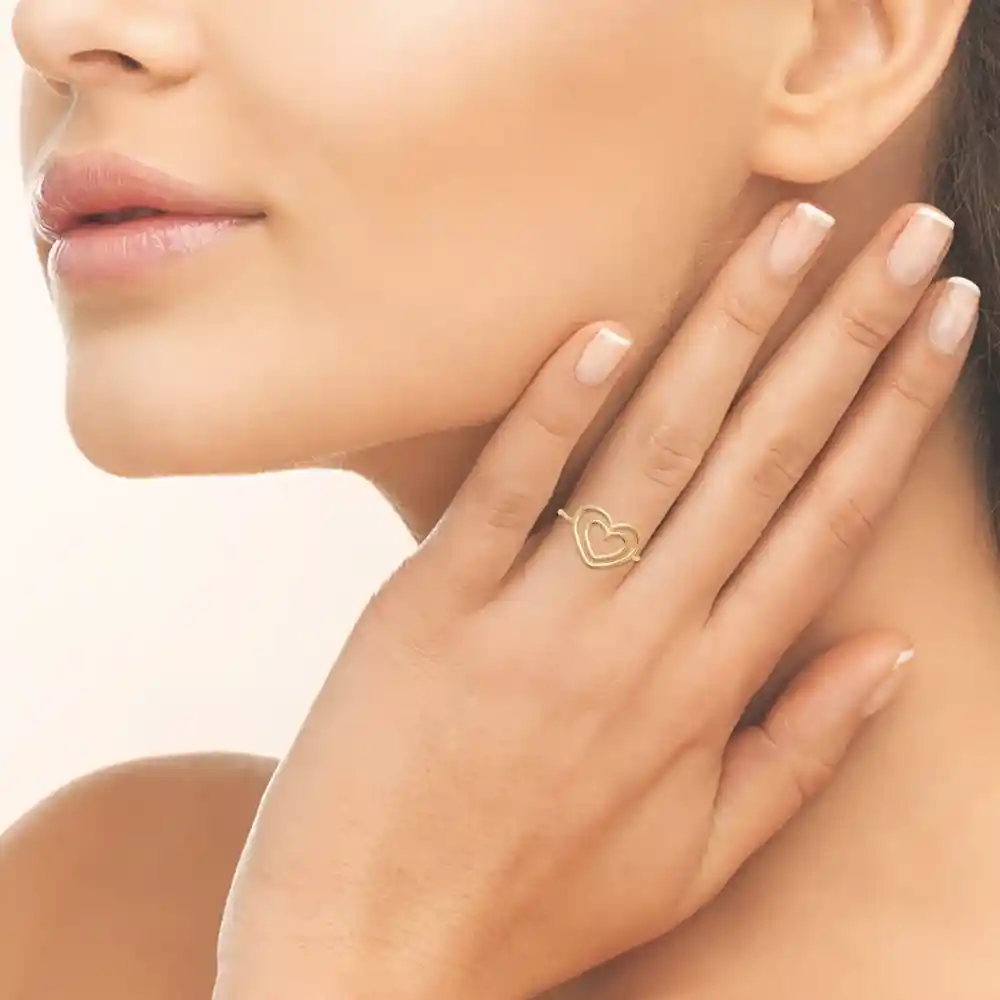 La bague coeurs imbriqués se marie parfaitement avec d’autres bijoux tels qu’une chaîne délicate en plaqué or ou des boucles d’oreilles discrètes. Pour un look cohérent, optez pour une coiffure élégante comme un chignon bas, et une tenue sobre mais chic. La combinaison de ces éléments mettra en valeur la finesse et l’éclat de la bague.