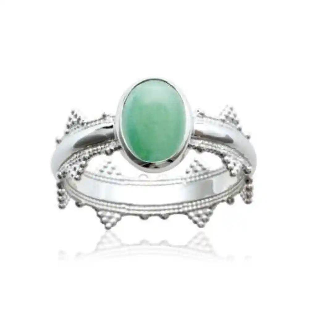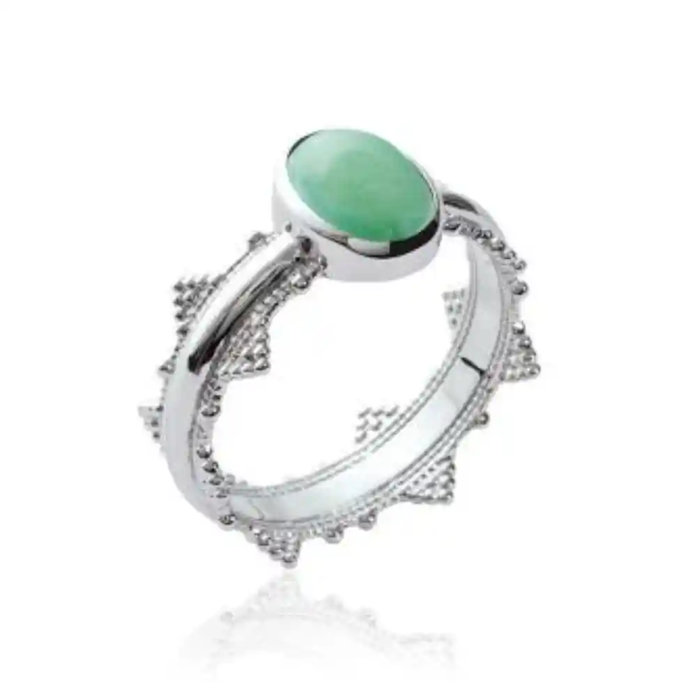 Bague couronne argent rhodié aventurine verte