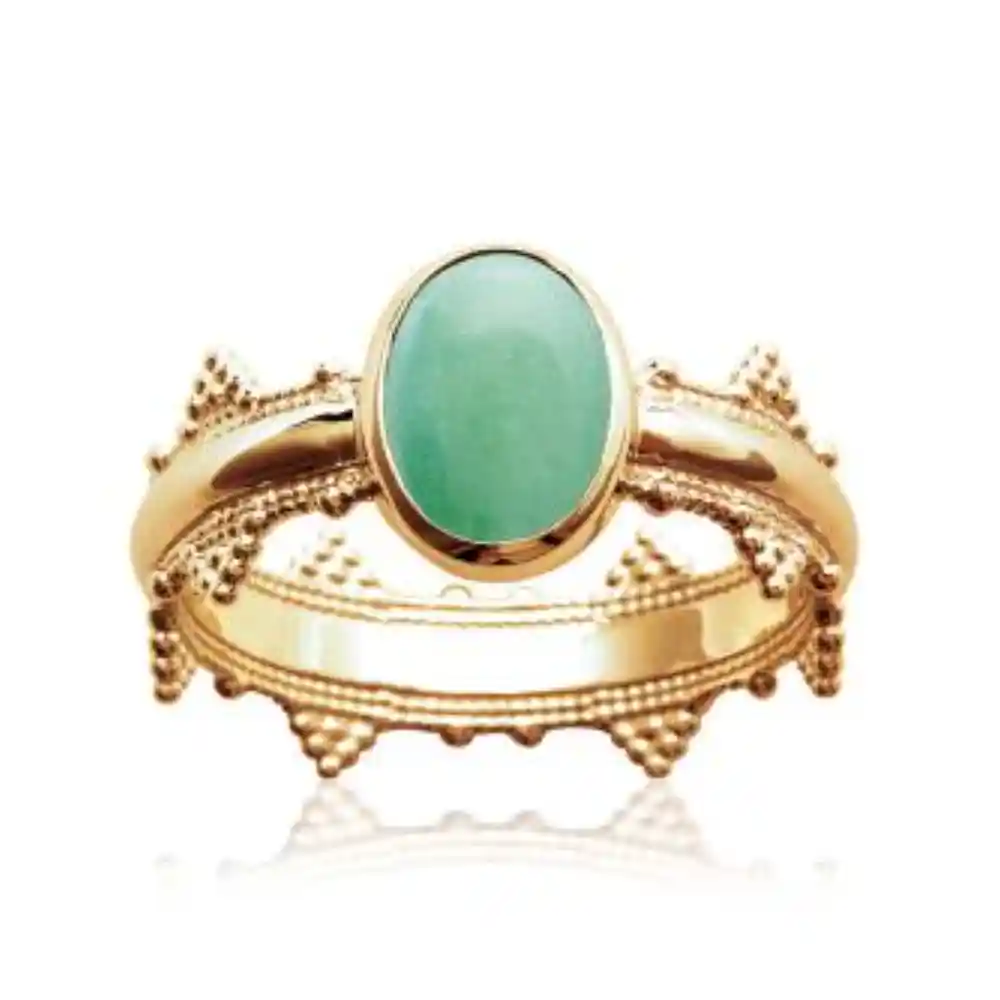 Charme et couleur : la bague couronne plaquée or à l’aventurine verte