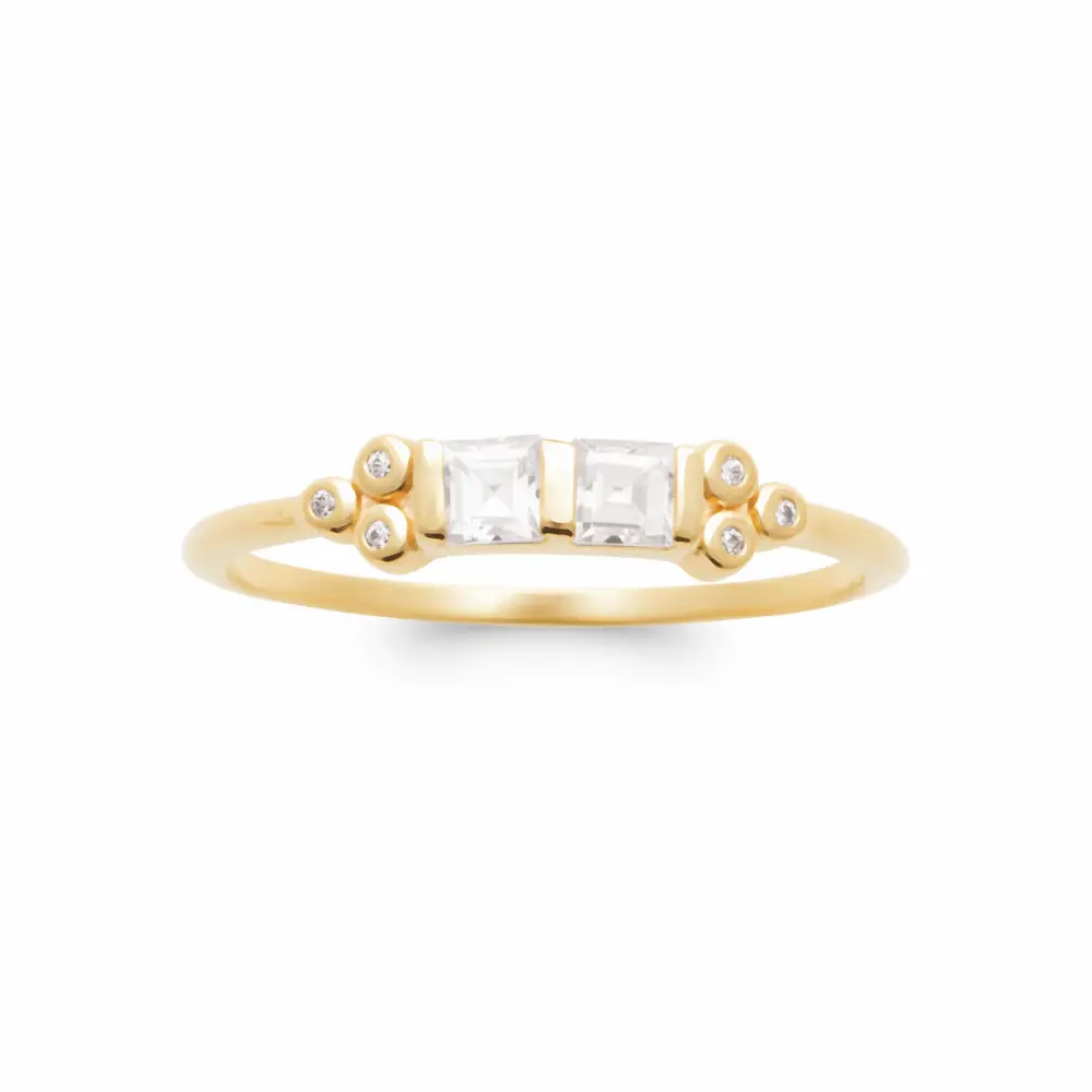La Quintessence de l’Élégance : Bague plaqué or zircons carrés et ronds