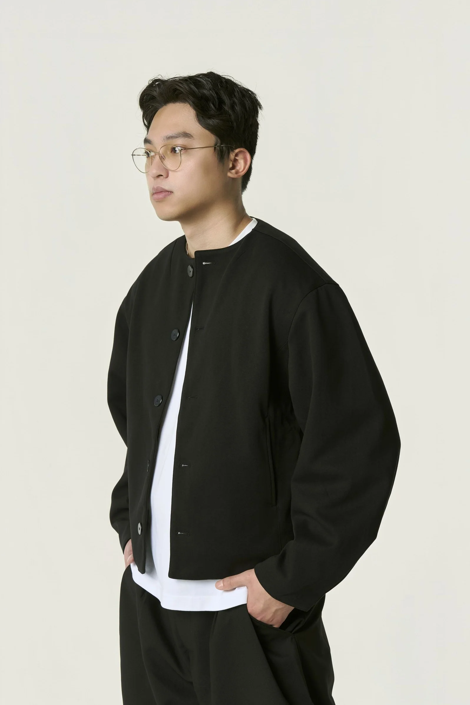 Une pièce essentielle, pensée pour ceux qui recherchent la liberté de mouvement, la sobriété et la polyvalence dans un vestiaire moderne.