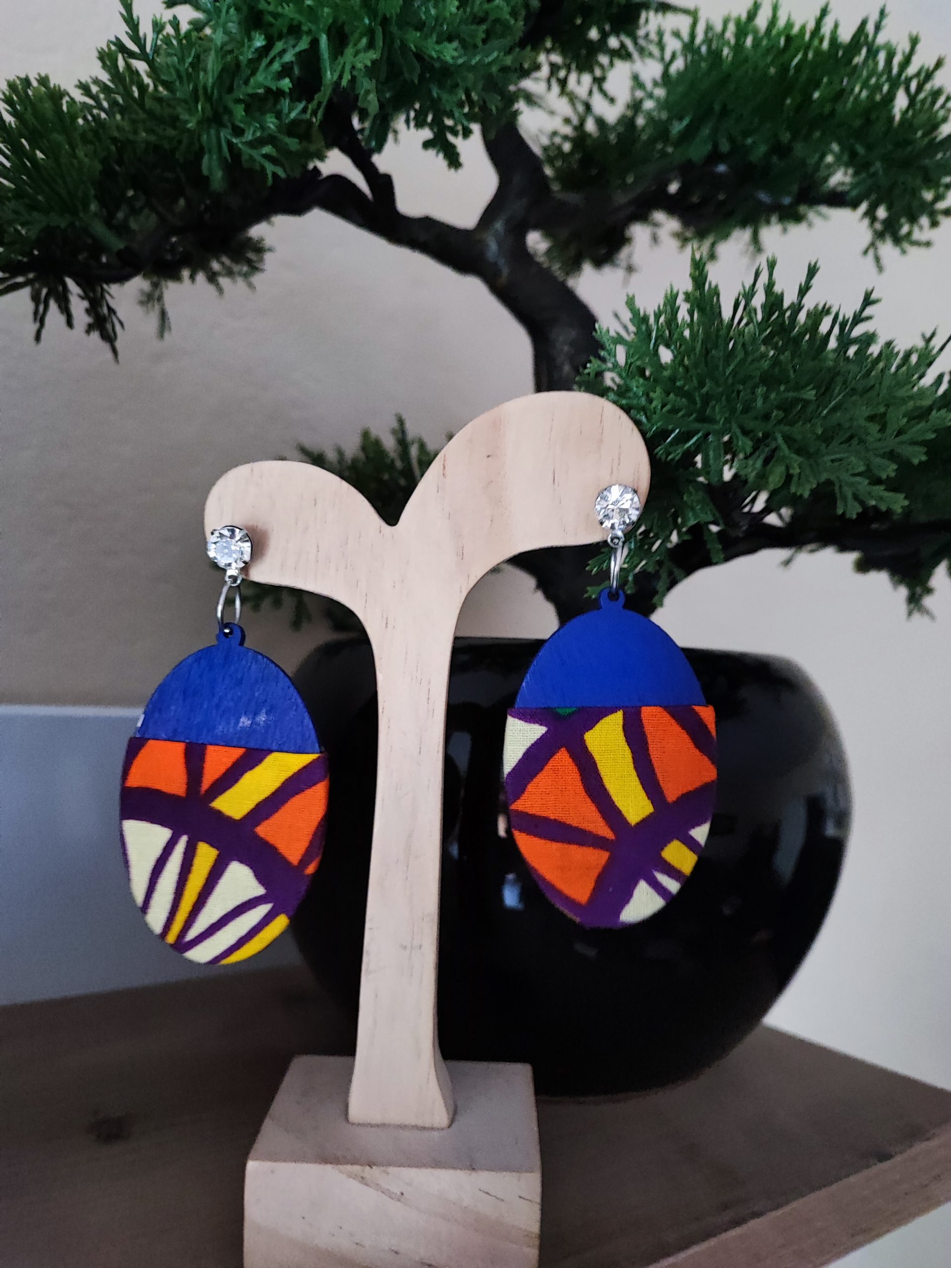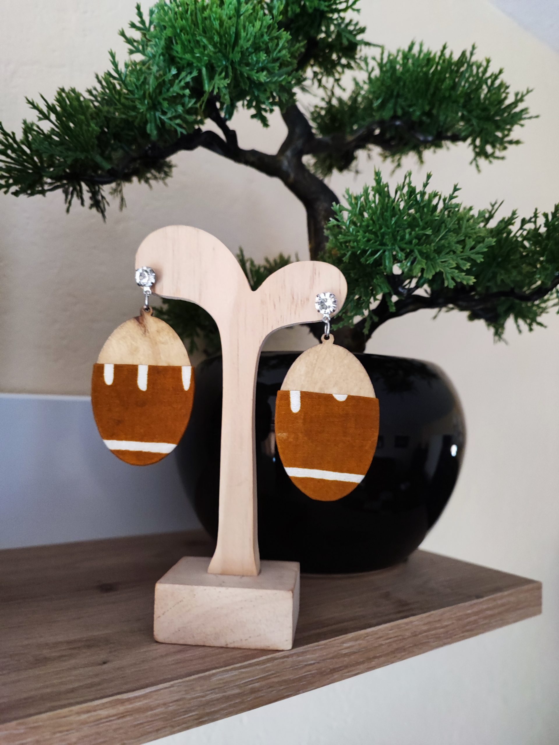Boucle d’oreille en wax, boucle en bois léger