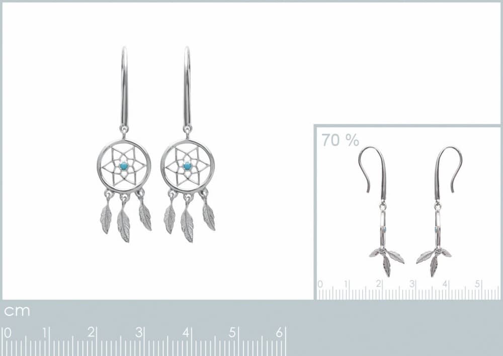 Boucles d’oreilles attrape rêves turquoise argent rhodié