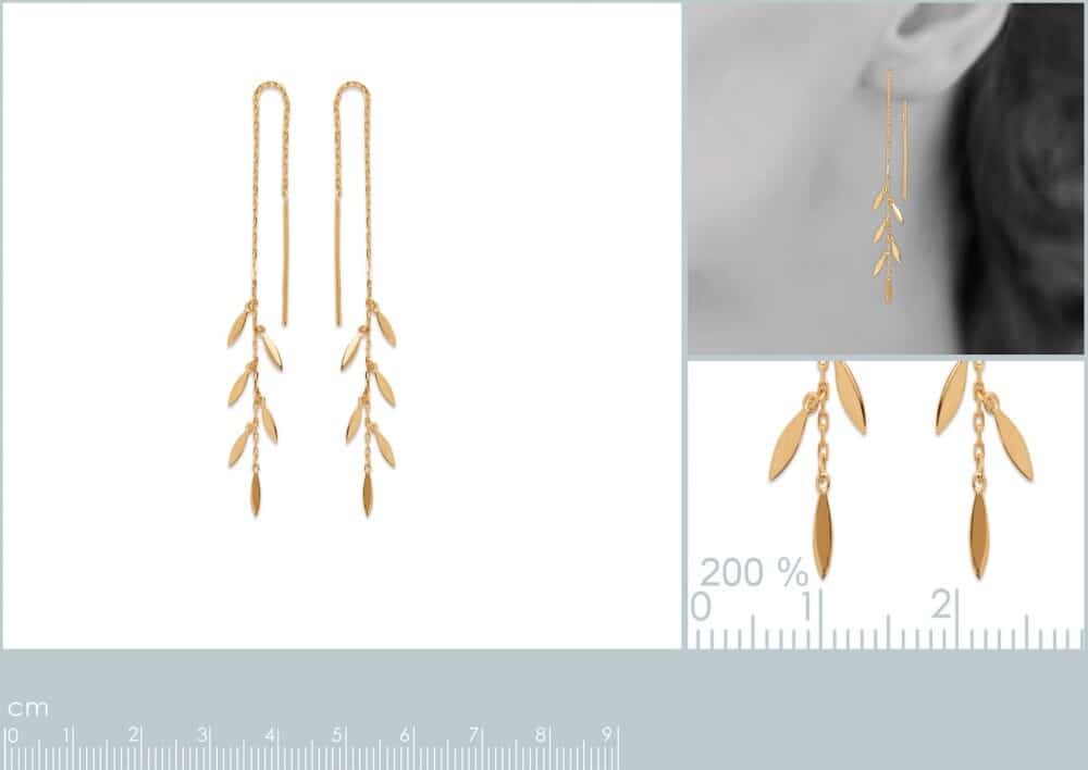 Boucles d’oreilles chaîne pendante feuilles plaqué or
