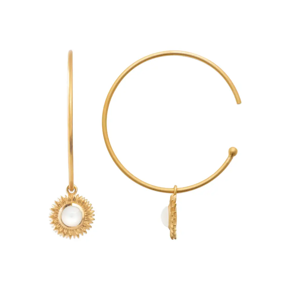 Boucles d’oreilles créoles et pampilles pierre de lune tournesol