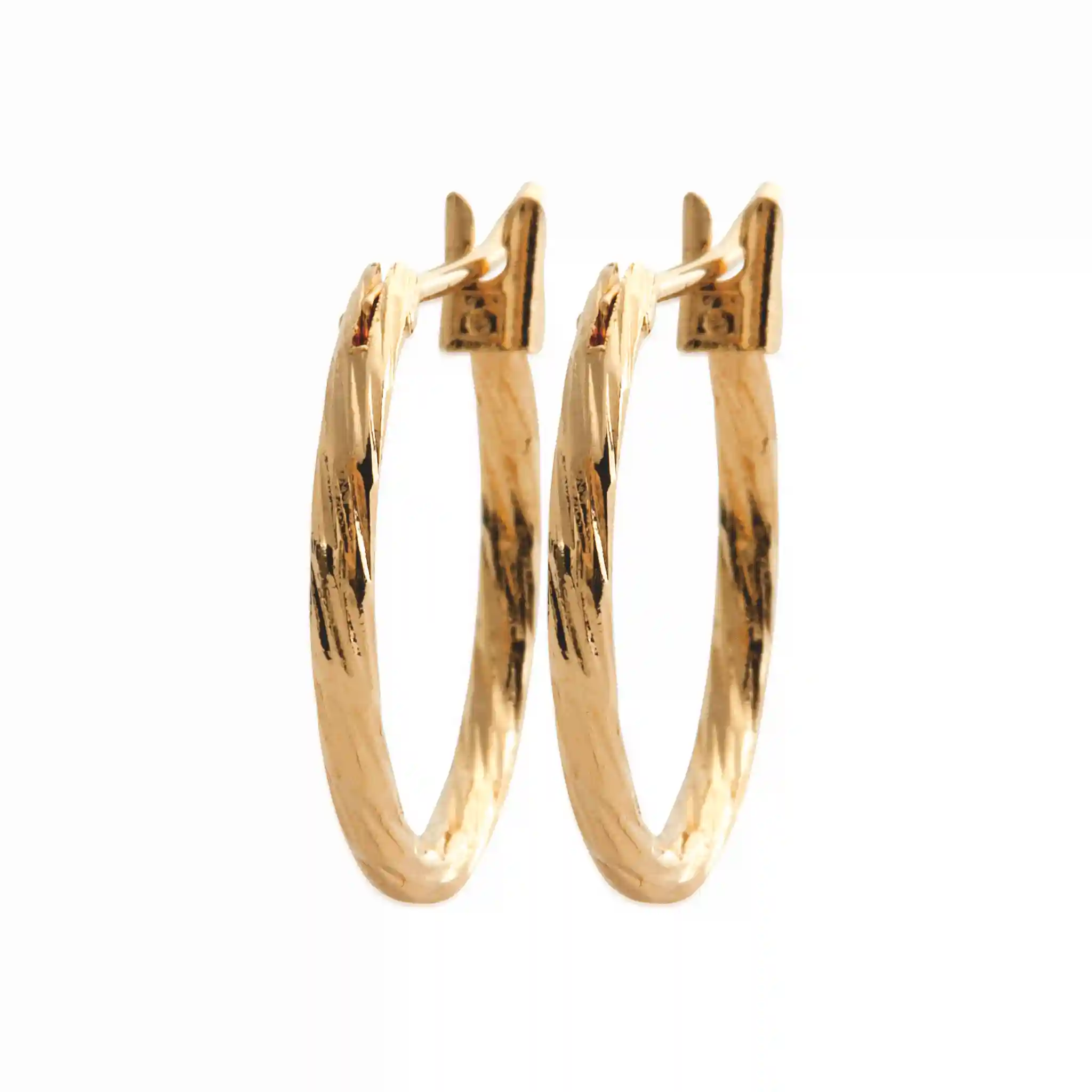 Ce qui rend ces créoles plaquées or uniques, c’est leur design finement striée, qui capte la lumière avec élégance. Chaque reflet souligne la texture subtile du métal et confère au bijou une personnalité à part. Leur rondeur parfaite et leur éclat doré rappellent la beauté des gestes simples et la grâce naturelle.
