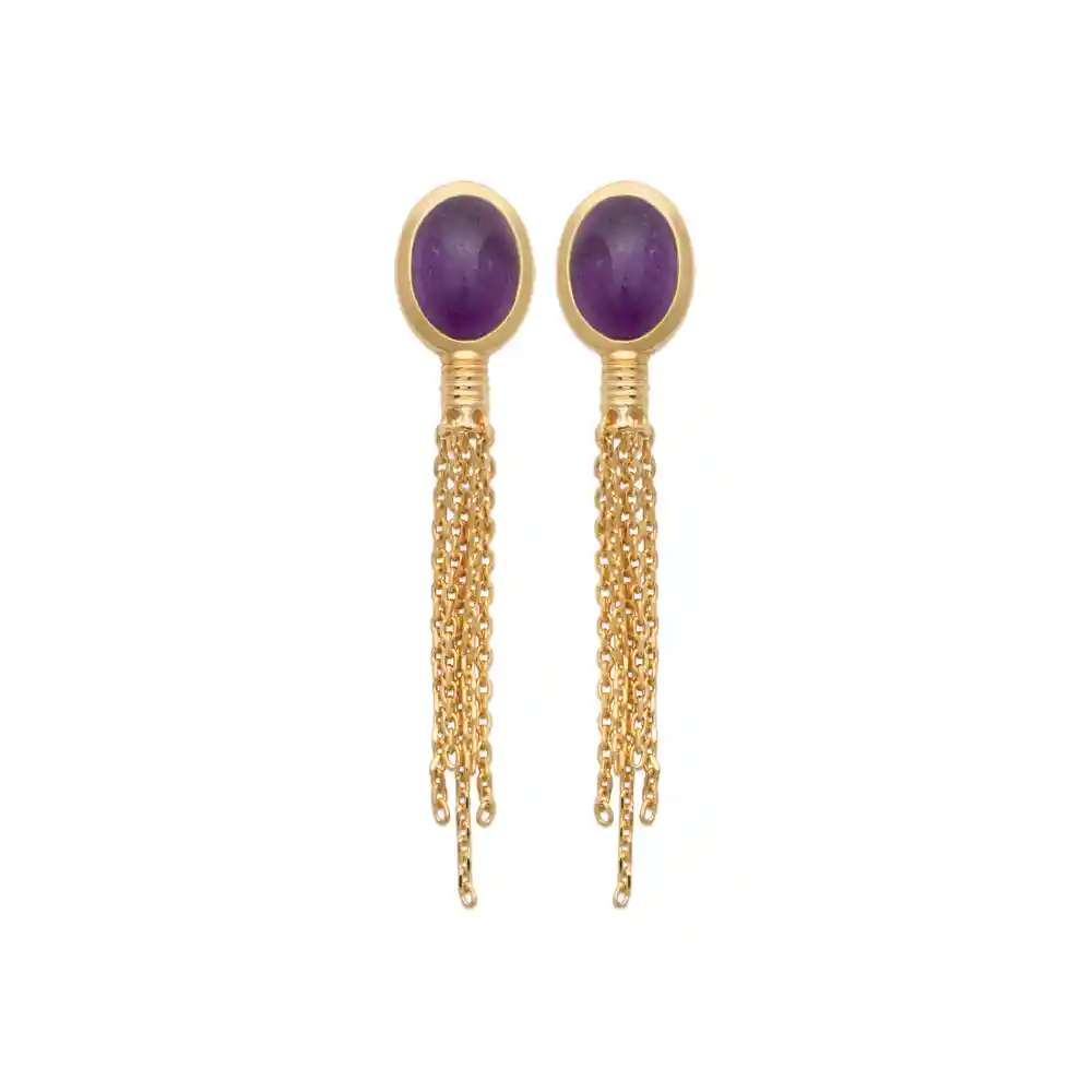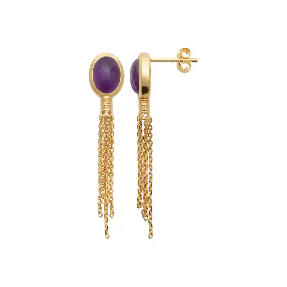 Boucles d’oreilles pendantes améthyste chaînes plaqué or