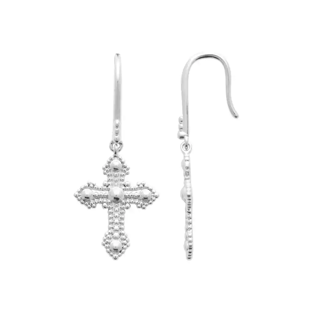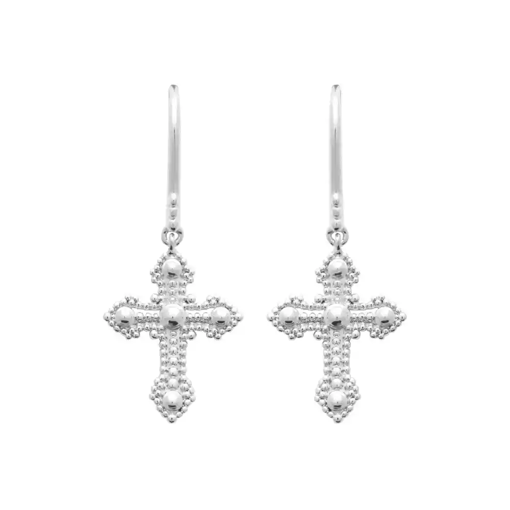 Boucles d’oreilles pendantes croix argent rhodié Clara
