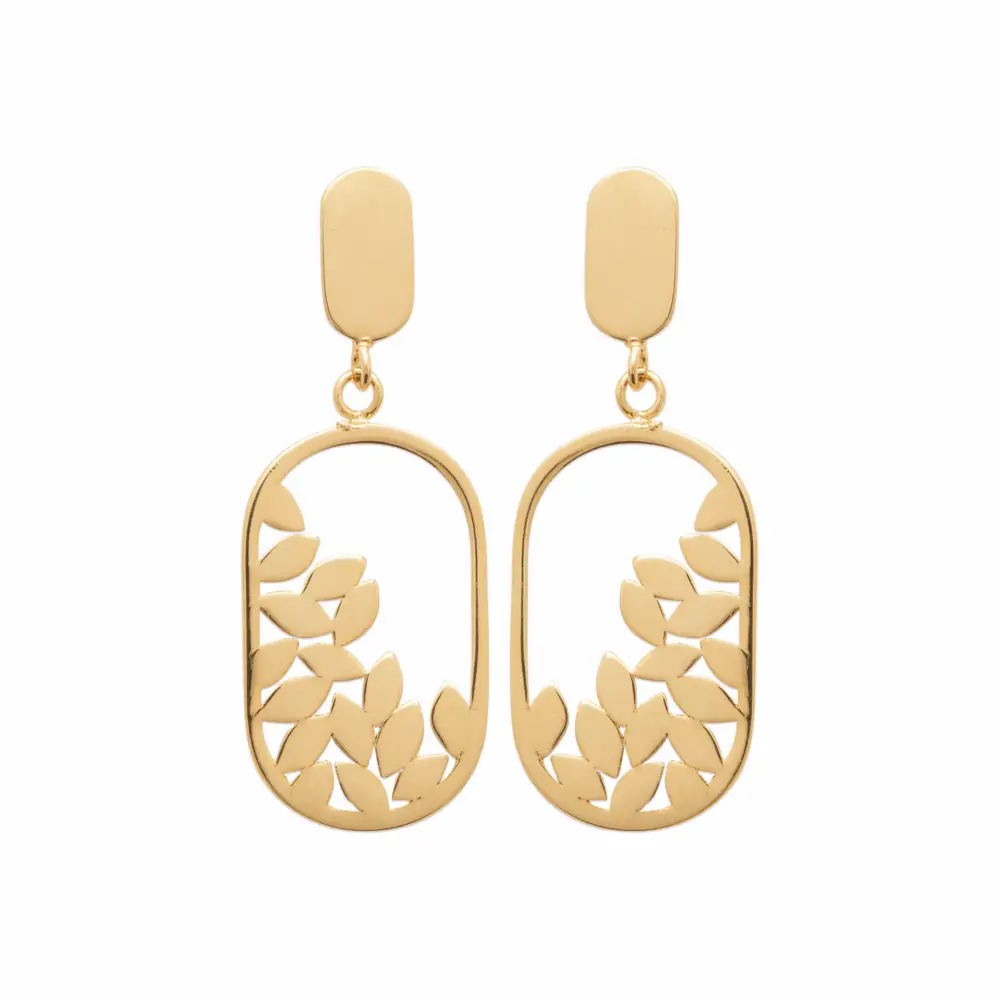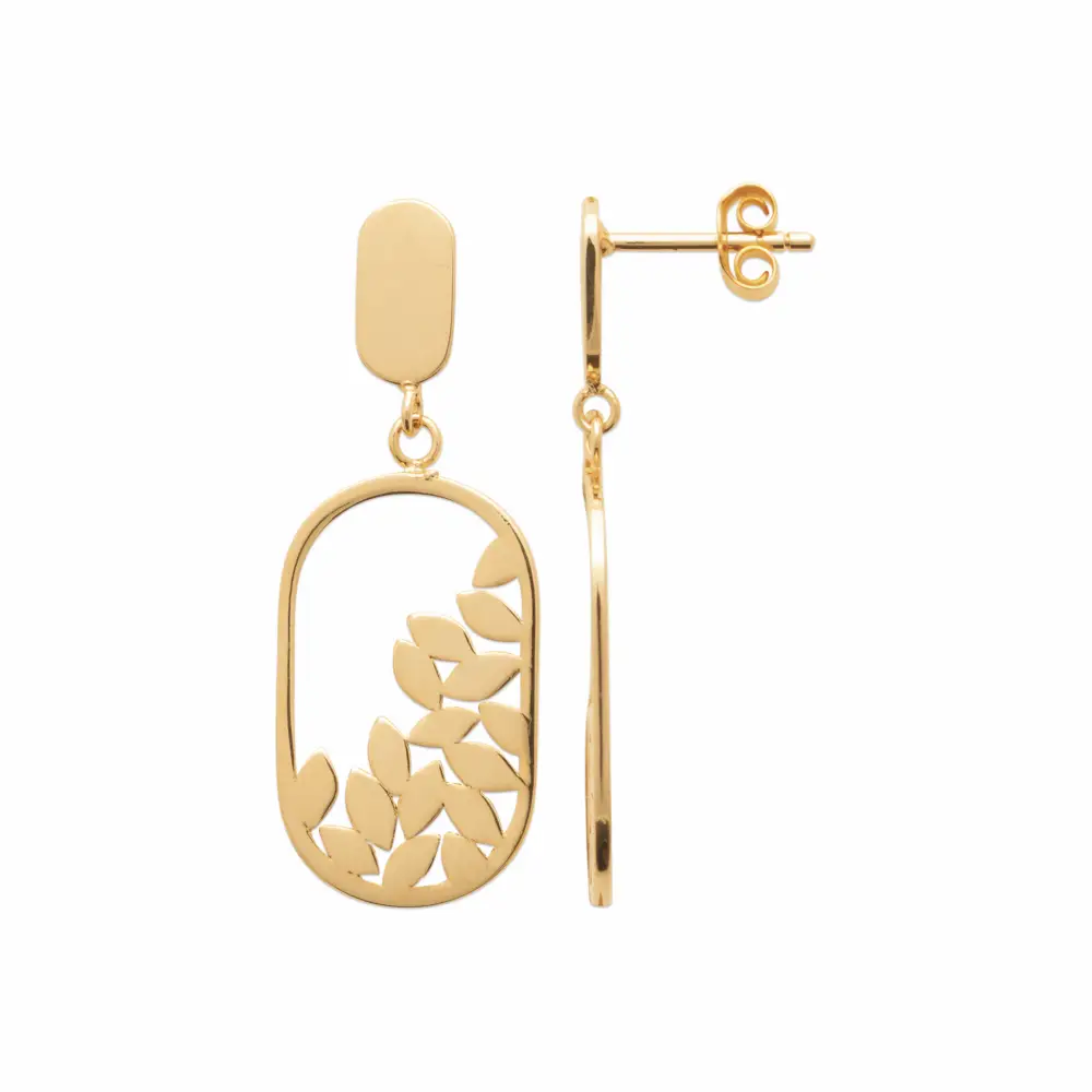 Boucles d’oreilles pendantes plaquĆ© or ovales et feuilles
