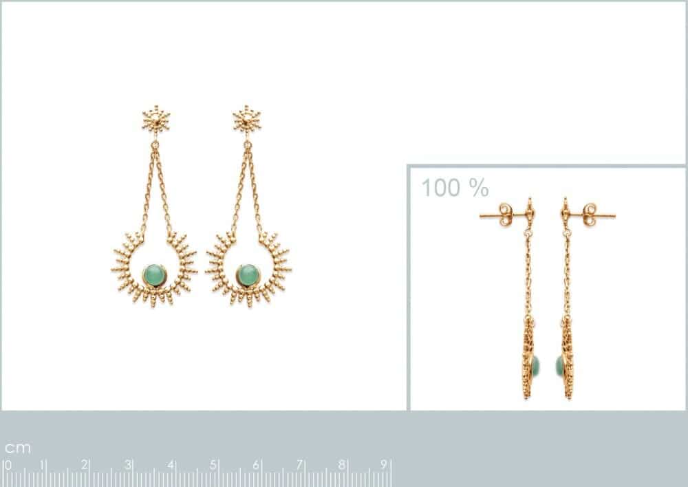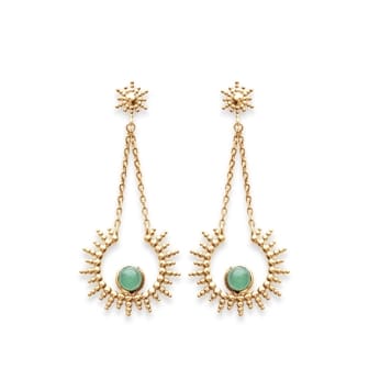 Boucles d’oreilles pendantes soleil aventurine plaqué or