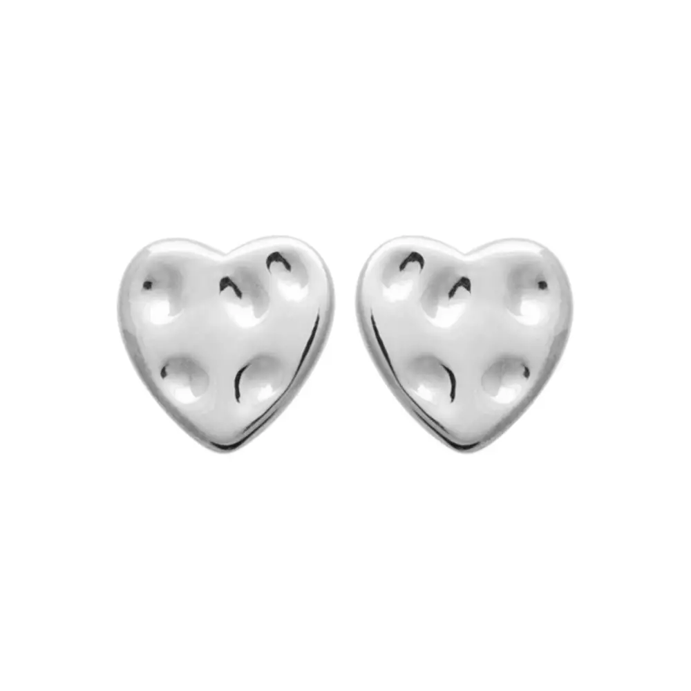 Boucles d’oreilles puces coeur martelé en argent rhodié