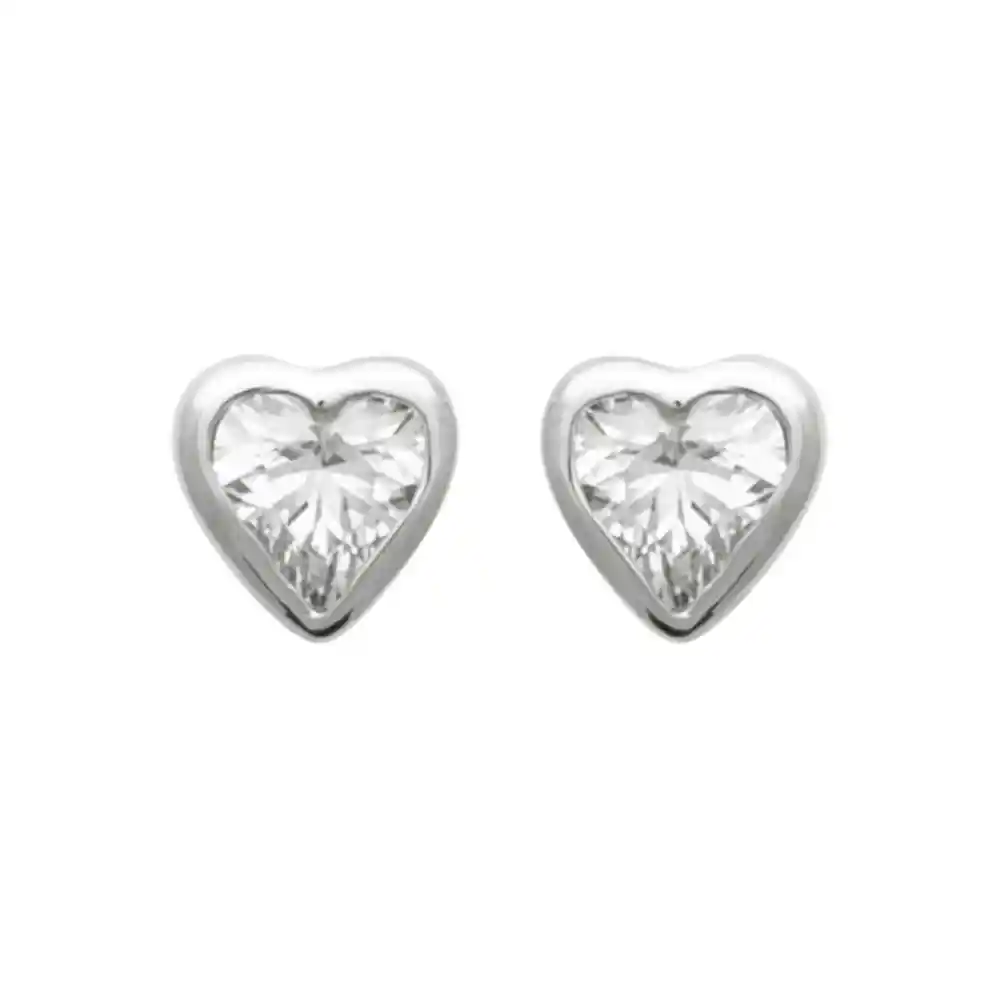 Boucles d’oreilles puces coeur solitaire argent rhodié