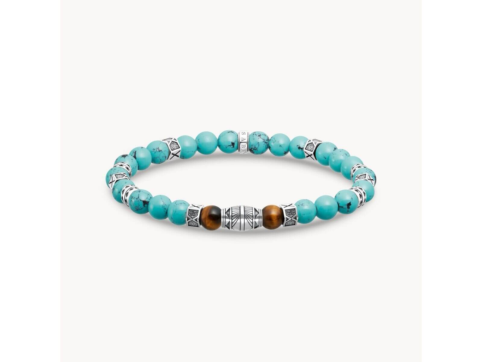BRACELET AVEC TURQUOISES BEADS ET OEIL-DE-TIGRE BEADS ARGENT