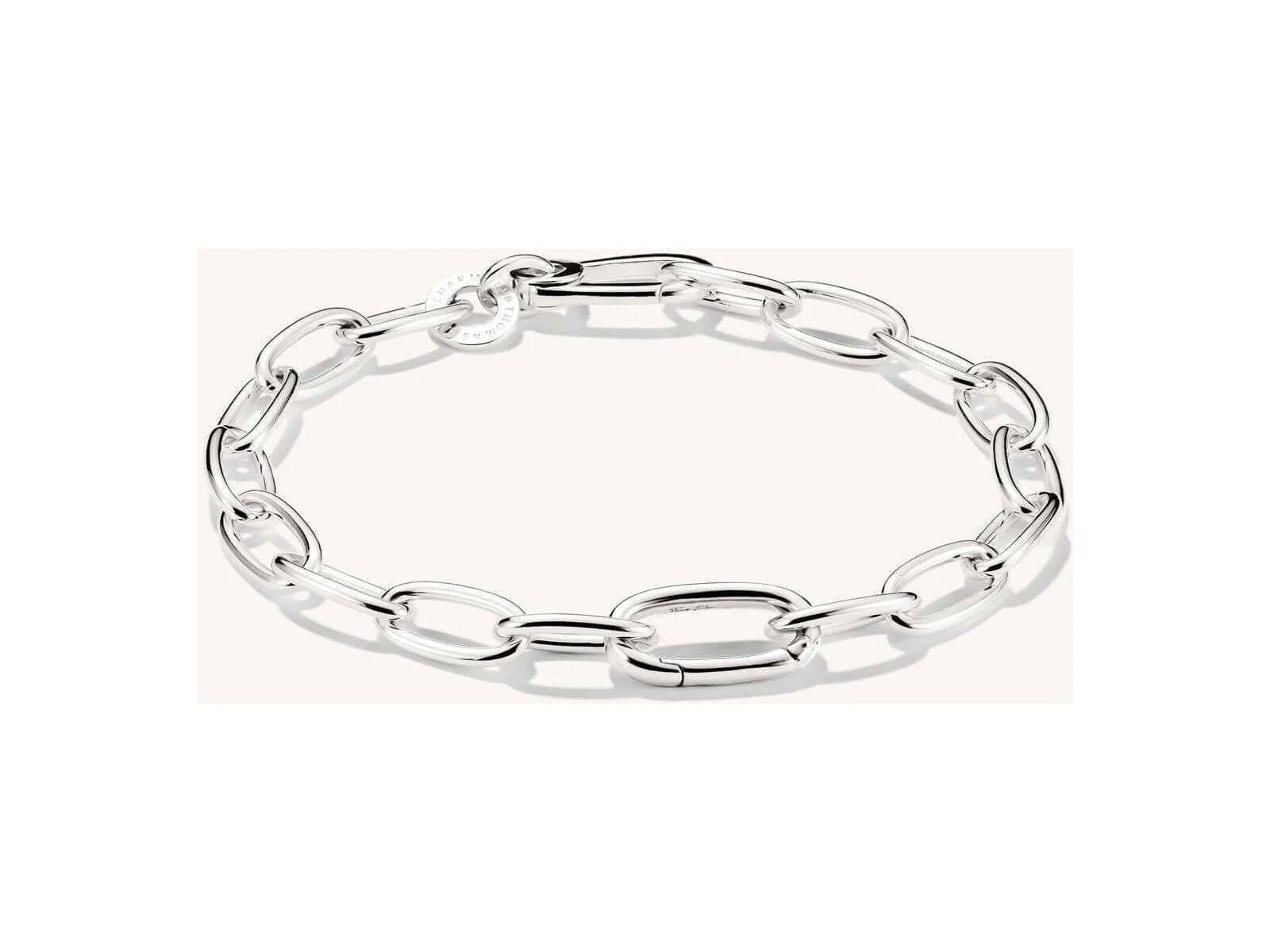 Ce bracelet charm en argent 925 recyclé allie élégance et personnalisation. Son maillon central ovale, plus grand, s’ouvre facilement pour y fixer des breloques avec œillet, tandis que les maillons plus petits accueillent des charms à mousqueton. Créez un bijou unique qui reflète votre style et vos souvenirs, grâce à un design intemporel et durable, parfait pour accompagner toutes vos tenues au quotidien.