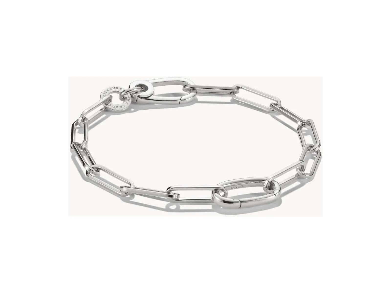 Ce bracelet charm en argent 925 recyclé allie élégance et modernité avec son design paperclip tendance. Ses maillons ovales allongés, inspirés des trombones classiques, offrent un style unique et raffiné. Le Connect Link central s’ouvre facilement pour fixer vos charms à œillet en toute sécurité, vous permettant de personnaliser votre bracelet selon vos envies. Sa fermeture avec bague à logo Charm Club et mousqueton garantit un maintien fiable. Un accessoire parfait pour exprimer votre personnalité avec charme et sophistication