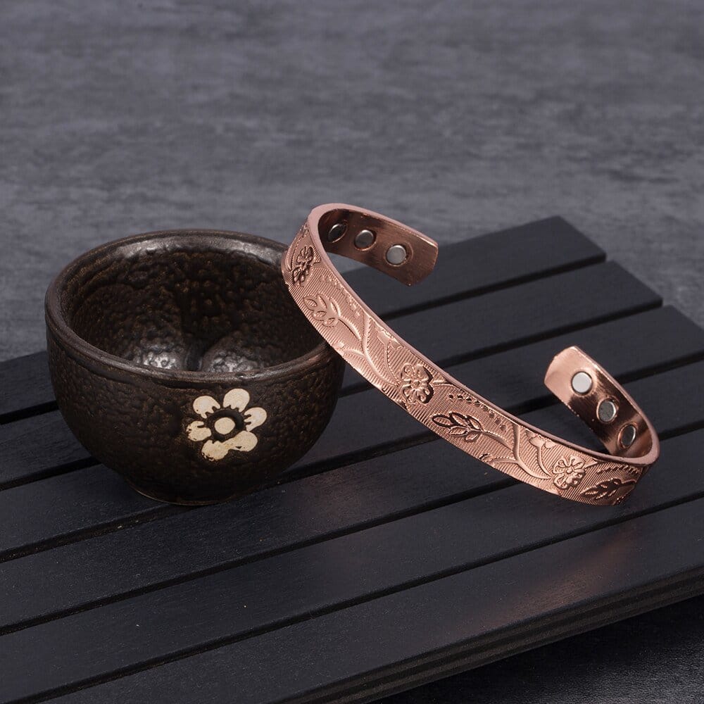 - Un bijou avec fleurs, finement ciselé, qui capture la beauté naturelle du cuivre.