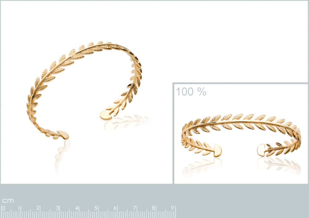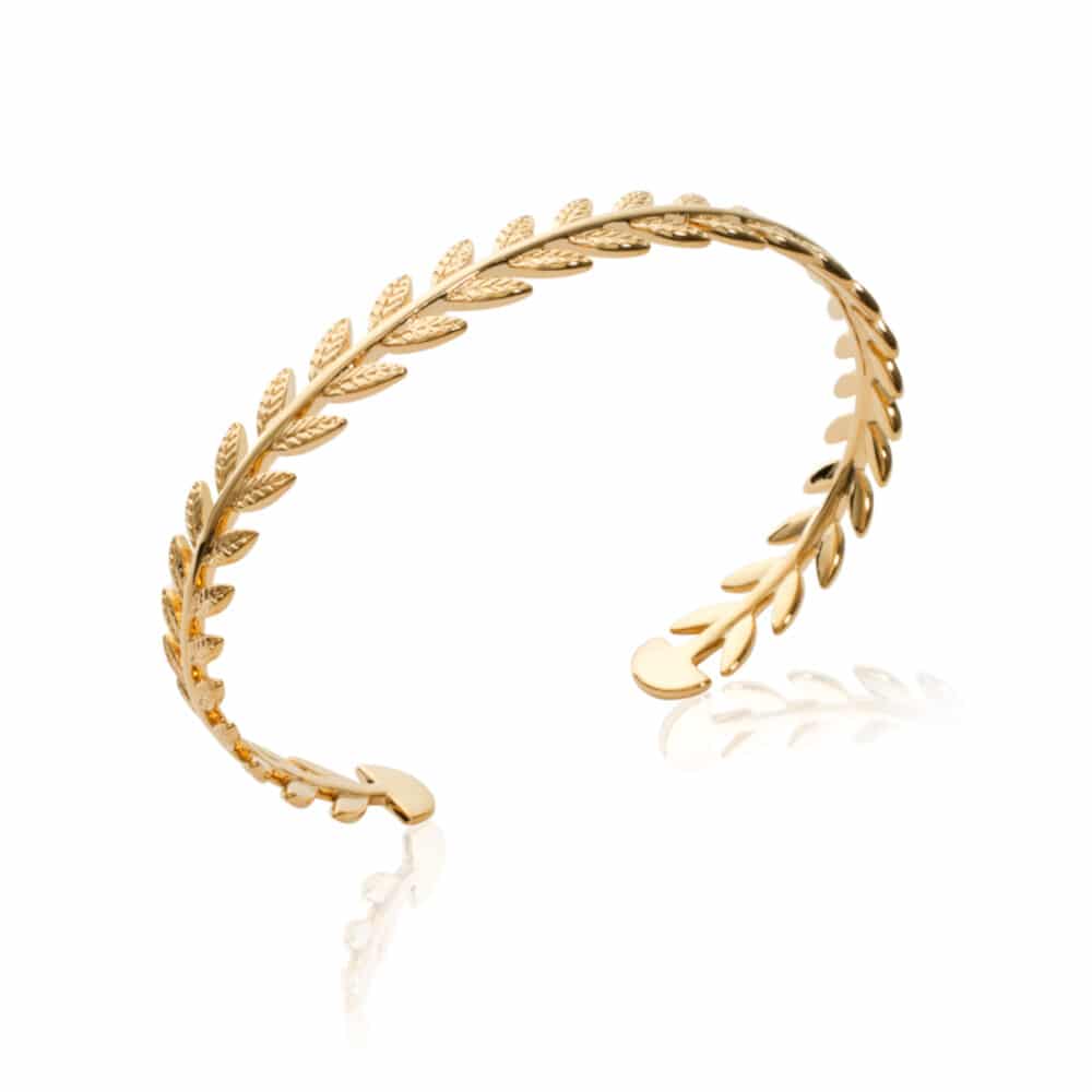 Le bracelet laurier en plaquĆ© or est une cĆ©lĆ©bration dĆ©licate et raffinĆ©e de la nature et de la fĆ©minitĆ©. Chaque feuille de laurier, finement ciselĆ©e, s’entrelace dans une danse Ć©lĆ©gante et continue autour de votre poignet, crĆ©ant une symphonie visuelle de lumiĆØre et de forme. La couleur jaune profonde et riche du plaquĆ© or 18 carats enveloppe chaque dĆ©tail avec une chaleur et une brillance inĆ©galĆ©es, offrant un spectacle de beautĆ© et de sophistication.