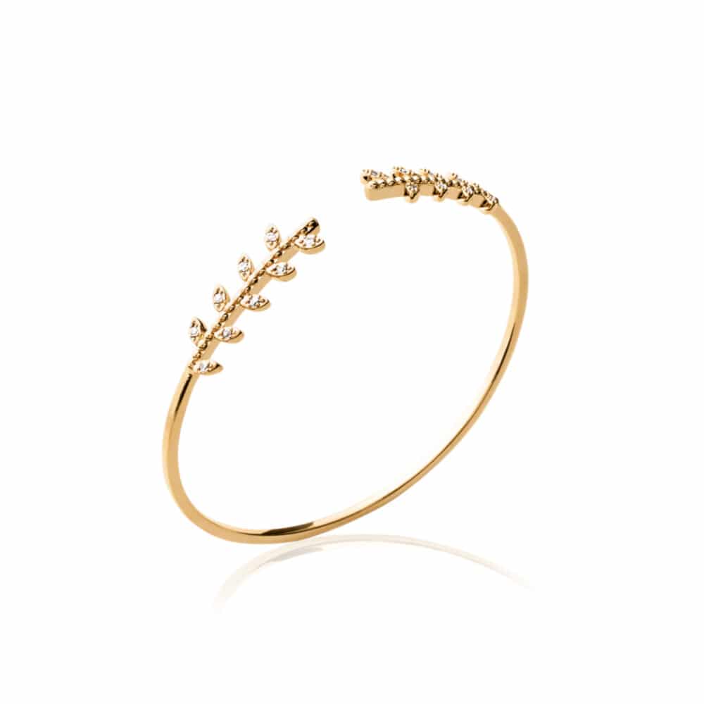 Bracelet jonc laurier zircons plaquƩ or