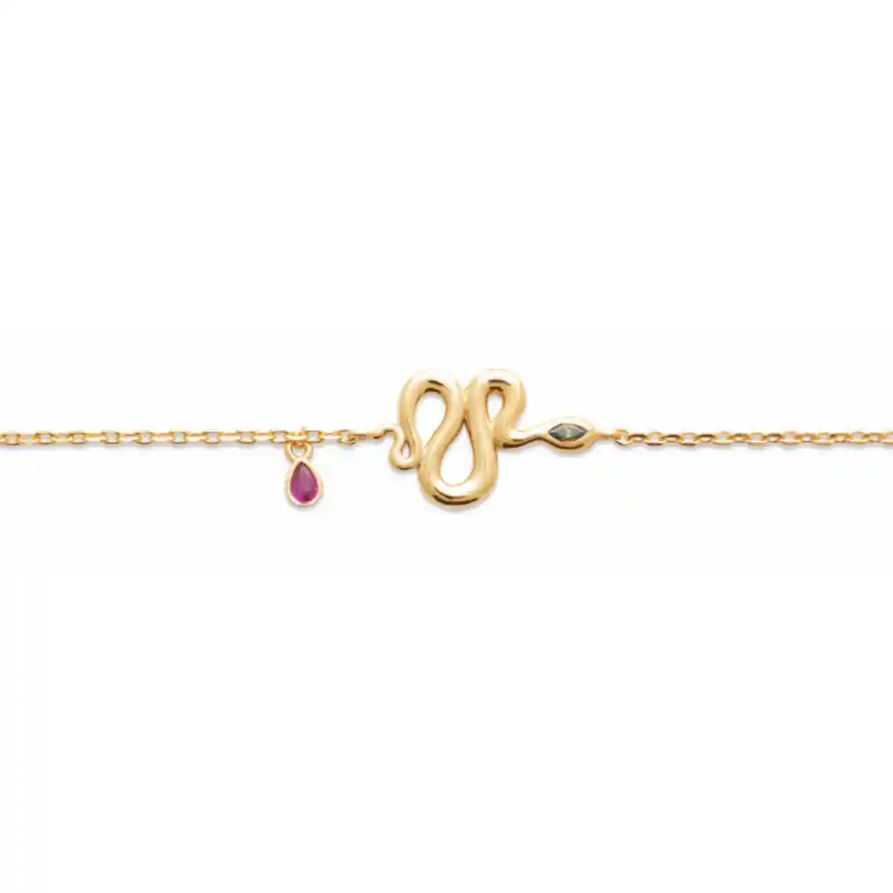 Bracelet plaqué or serpent à sonnette émeraude et rubis synthétiques
