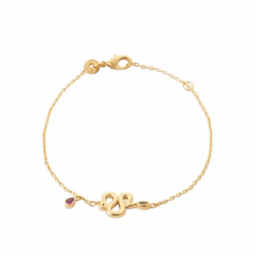 Le bijou serpent femme se compose d’une chaîne à maillons fins, ajustable, en plaqué or brillant. Cette chaîne est conçue pour épouser avec grâce le poignet de celle qui la porte, apportant une touche d’élégance discrète.