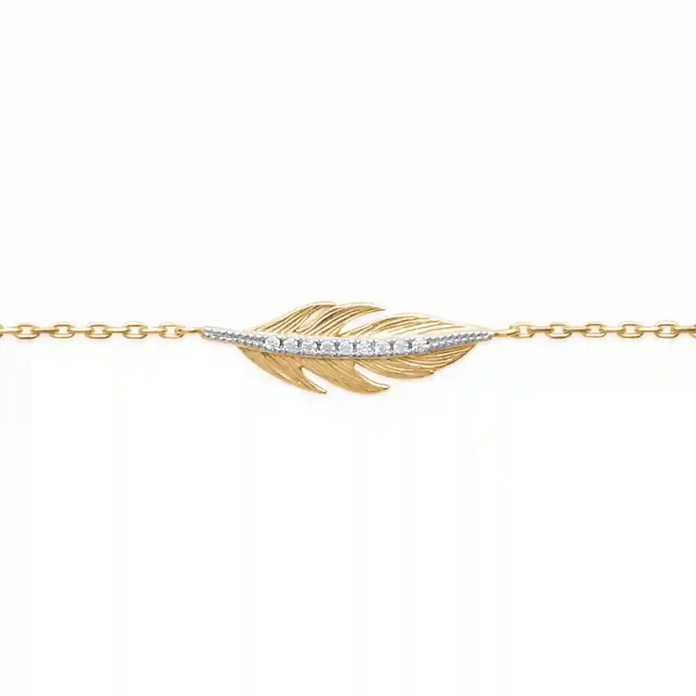 Bracelet plume plaqué or diamants synthétiques