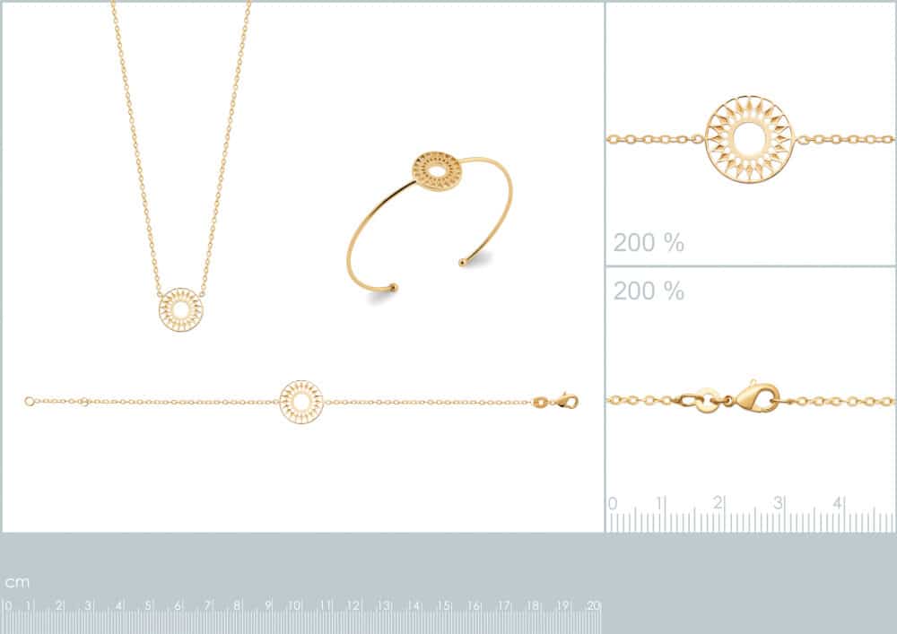 Un souffle de lumiĆØre vient enlacer votre poignet avec ce bijou aux courbes solaires. Ce jonc large, ornĆ© d’un motif central Ć©voquant un astre rayonnant, diffuse une aura chaleureuse et protectrice, rappelant la splendeur des journĆ©es d’Ć©tĆ© les plus douces. Le design se distingue par ses arabesques ajourĆ©es qui crĆ©ent un jeu de transparence Ć©lĆ©gant sur la peau. Chaque dĆ©coupe prĆ©cise du mĆ©tal permet Ć la lumiĆØre de circuler, mettant en valeur le travail dĆ©licat des dĆ©tails qui composent cet astre stylisĆ© au centre de la structure. FaƧonnĆ© en plaquĆ© or 18 carats avec une Ć©paisseur de 3 microns, ceā¦