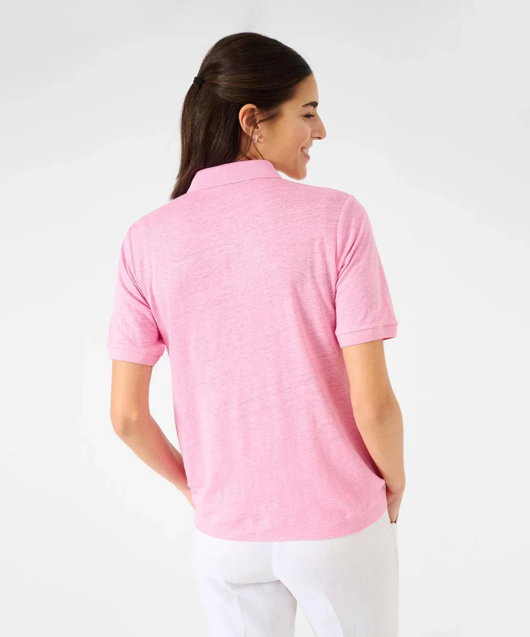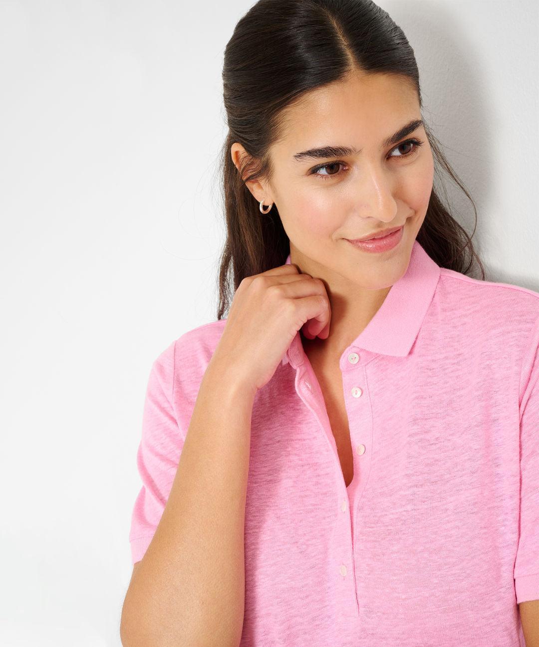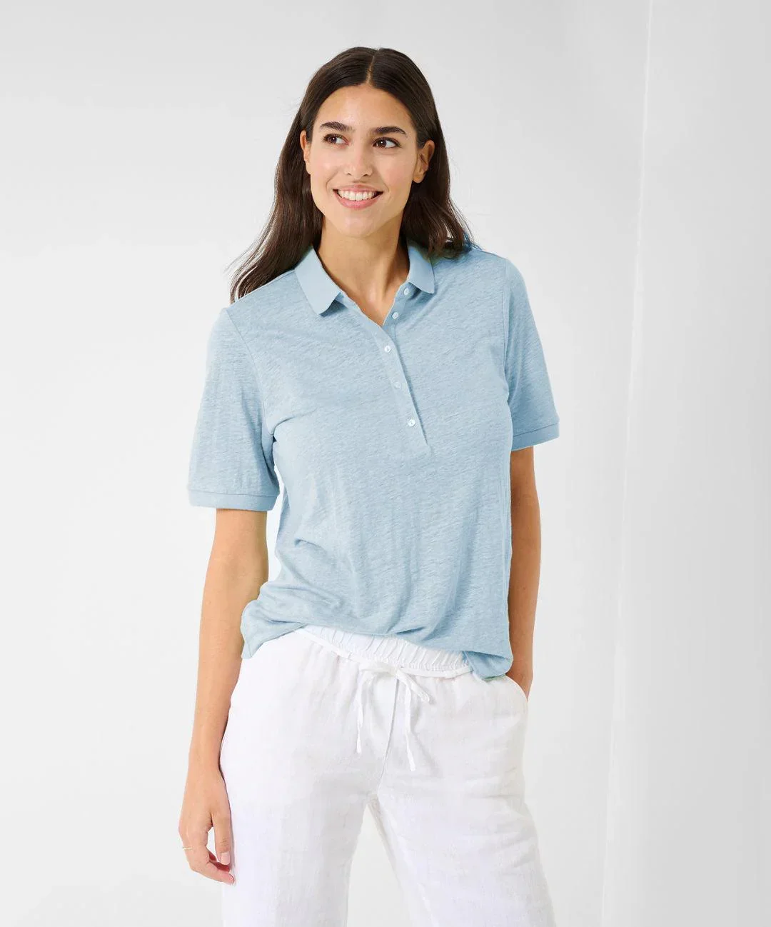 Une sportivité classique avec une touche estivale. Ainsi, le polo femme style CLAIRE propose une interprétation contemporaine du polo traditionnel. Des éléments de style typiques, tels que le col polo et la courte patte de boutonnage, complètent la silhouette décontractée et reçoivent une touche moderne grâce aux tons pastel actuels. Mais c’est avant tout la matière qui fait du polo un incontournable pour un look estival soigné. La qualité jersey fin du pur lin assure un confort aéré et léger. La fibre naturelle procure un toucher frais et agréable et confère au polo pour femme un aspect noble grâce à sa texture caractéristique.