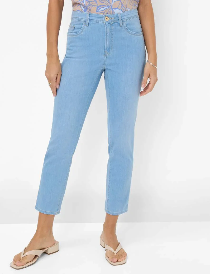 Le style MARY S est un basique pour les femmes. Véritable talent de combinaison, le jean 6/8 Five-Pocket complète toutes les tenues lorsqu’il est porté avec des polos ou des chemisiers. Ce modèle feminin Regular Fit assure un ajustement confortable avec sa coupe droite et sa taille mi-haute. Le design bien pensé des poches donne à ce pantalon un côté sportif. . Avec Ultralight, vous pouvez profiter d’une légèreté exceptionnelle. La combinaison de tissu et de traitement a créé une qualité ultra-légère, douce et durable. L’équipement Coolmax® EcoMade est ici particulièrement intéressant : fabriqué de manière durable, il est parfait pour les chaudes journées d’été. Les fibres de polyester recyclées innovantes se distinguent par un effet rafraîchissant et un séchage rapide. Le denim est en outre synonyme d’authenticité unique et allie l’aspect caractéristique du tissu à une grande résistance. Un mélange de coton écologique, résistant et doux pour la peau de ce jeans à cinq poches offre en outre un excellent confort.