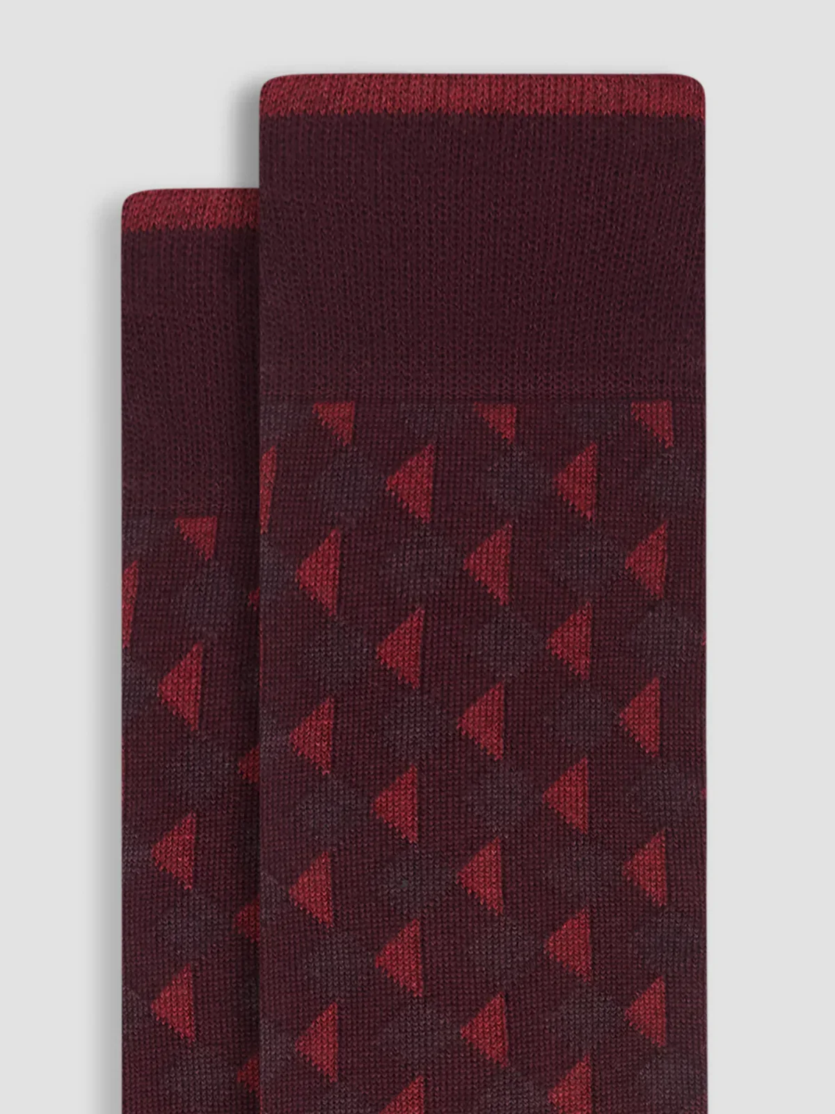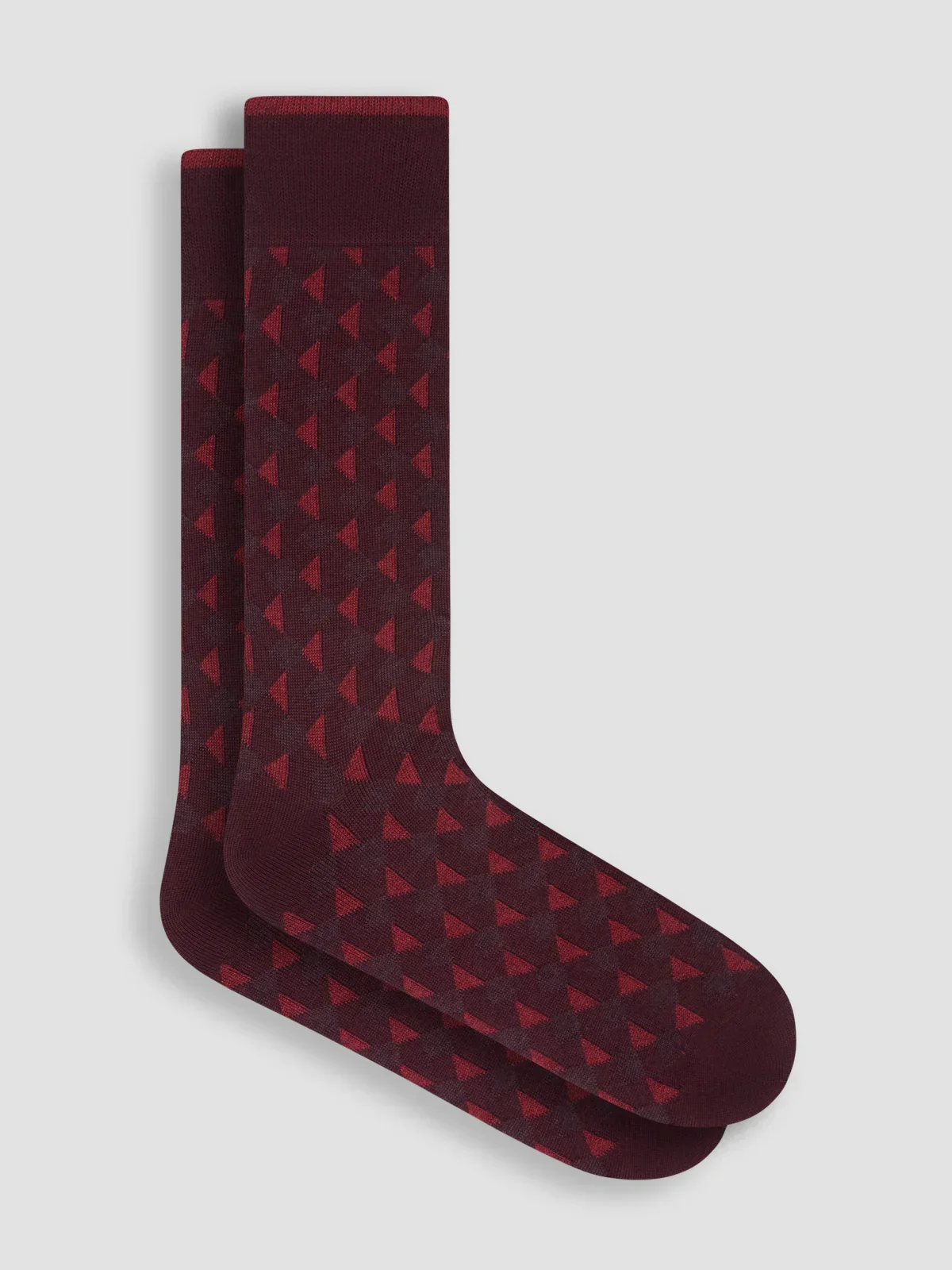 Découvrez l’élégance discrète des bas Bugatchi en coton et cachemire, ornés d’un motif triangles subtil. Conçus en Italie avec 67 % de coton doux et 15 % de cachemire, ces bas allient confort et raffinement. Leur composition enrichie en polyamide et élasthanne assure une tenue parfaite tout au long de la journée. Disponibles en bordeaux, marine et mocha, ils apportent une touche sophistiquée à votre garde-robe. Lavables en machine, ils allient praticité et luxe au quotidien. Taille unique pour un ajustement optimal.