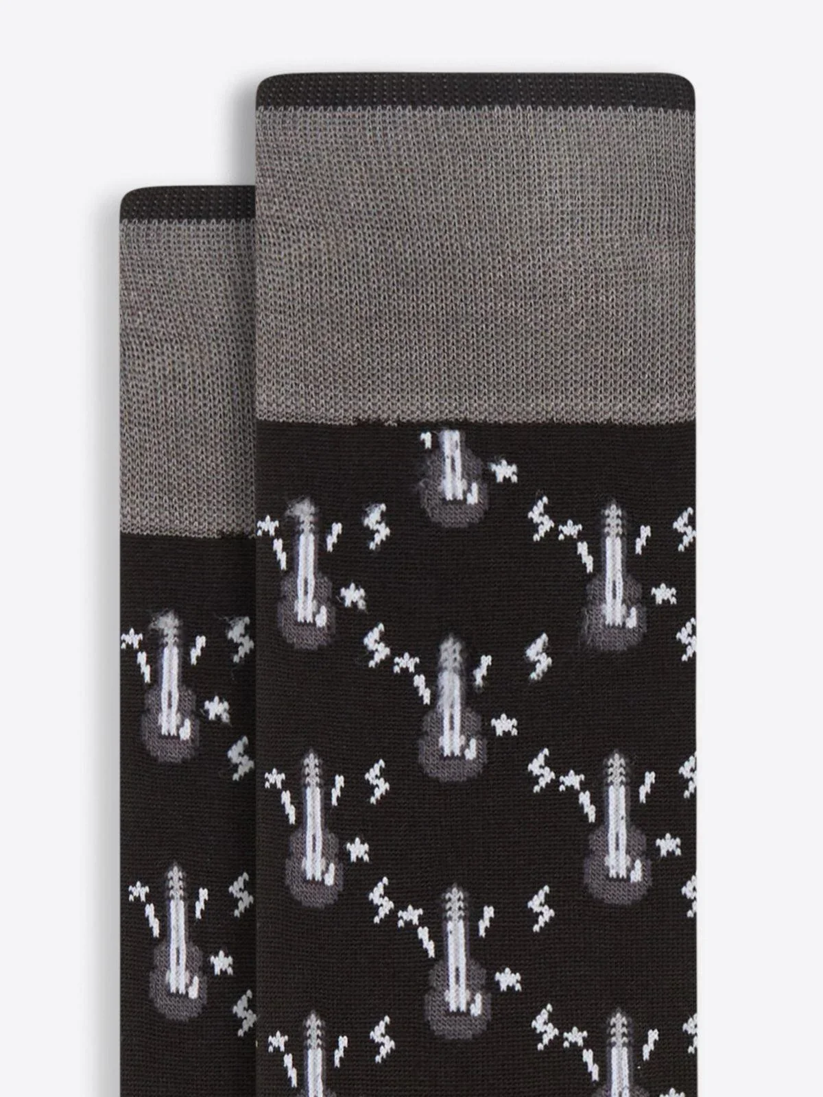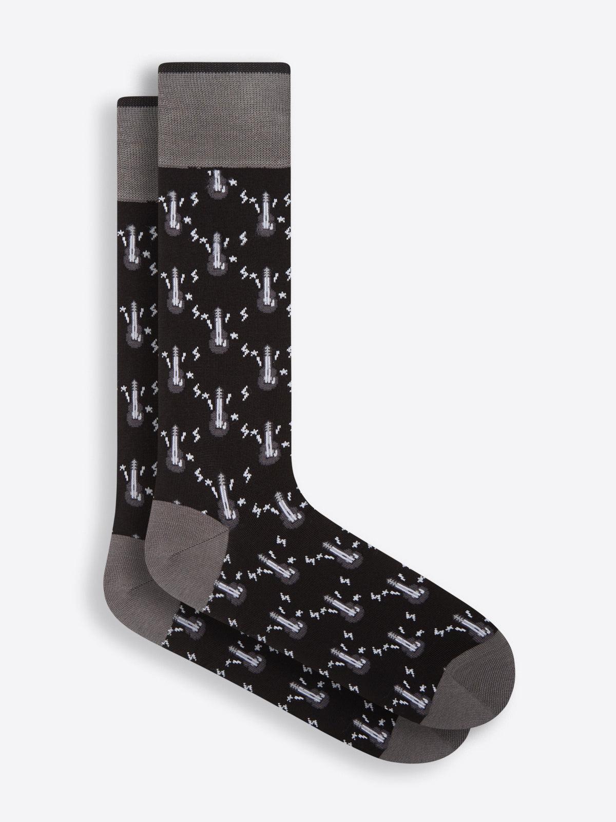 Bas de coton mercerisé motifs guitars. Une paire de bas en coton durable, fabriquée en Italie et composée à 80% de coton mercerisé, 17% de polyamide et 3% d’élasthanne. Disponible en Marine et Noir, les tailles uniques sont lavables à la machine. Les bas de coton Bugatchi sont une option confortable et durable pour votre tenue.