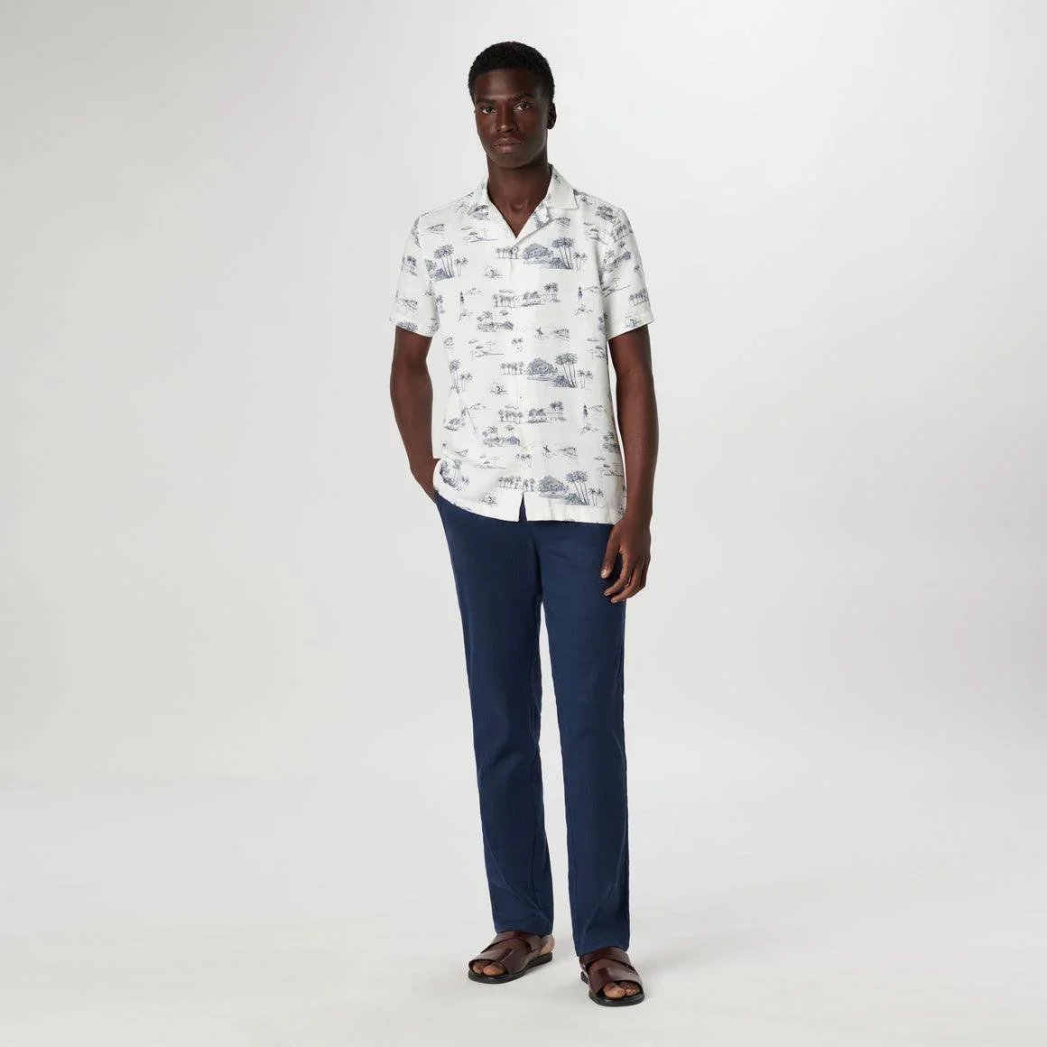 La chemise à manches courtes Jackson est confectionnée à partir d’un mélange coton-chanvre de qualité supérieure et présente un imprimé côtier rétro, un col camp et un ourlet droit.