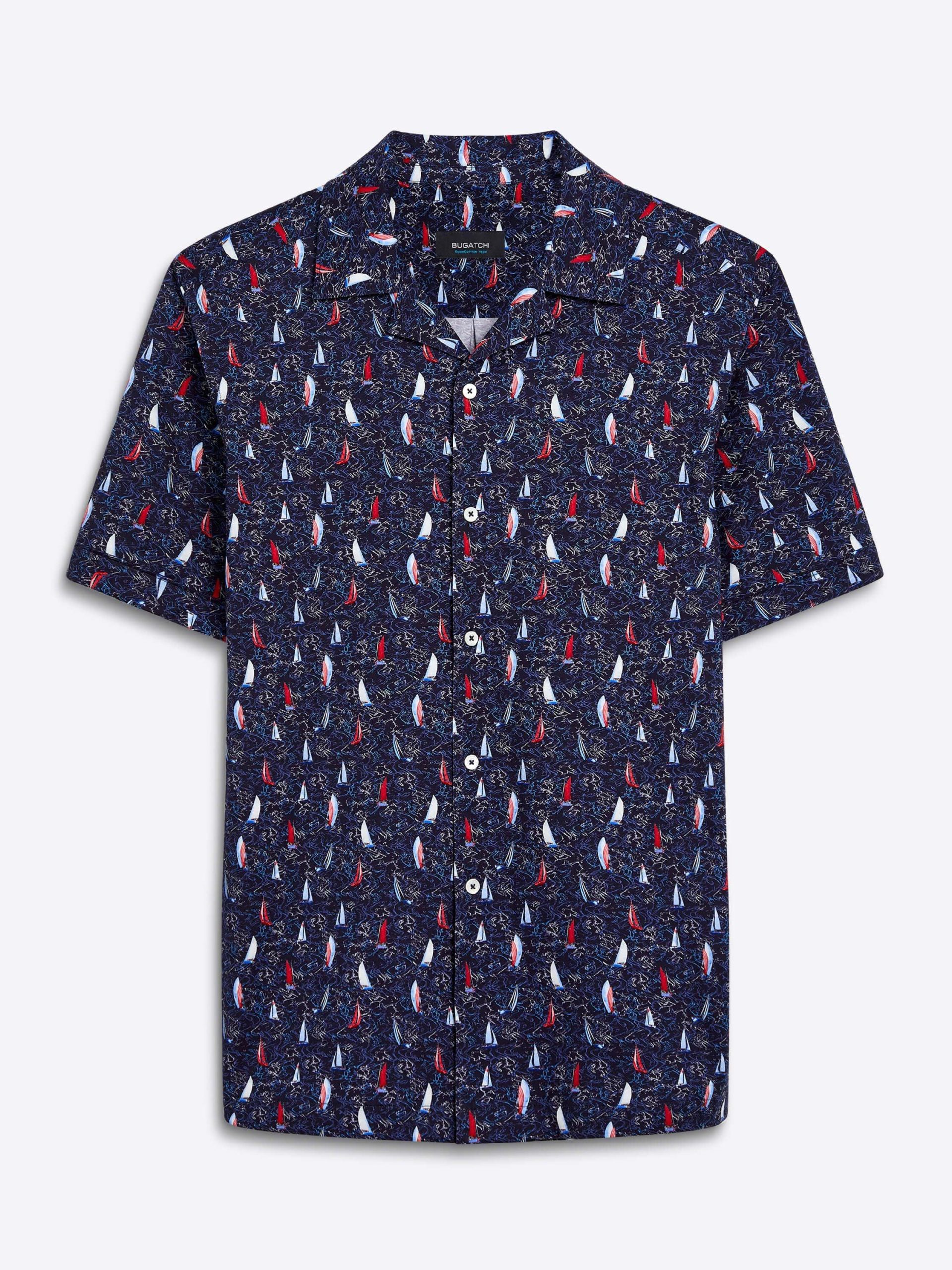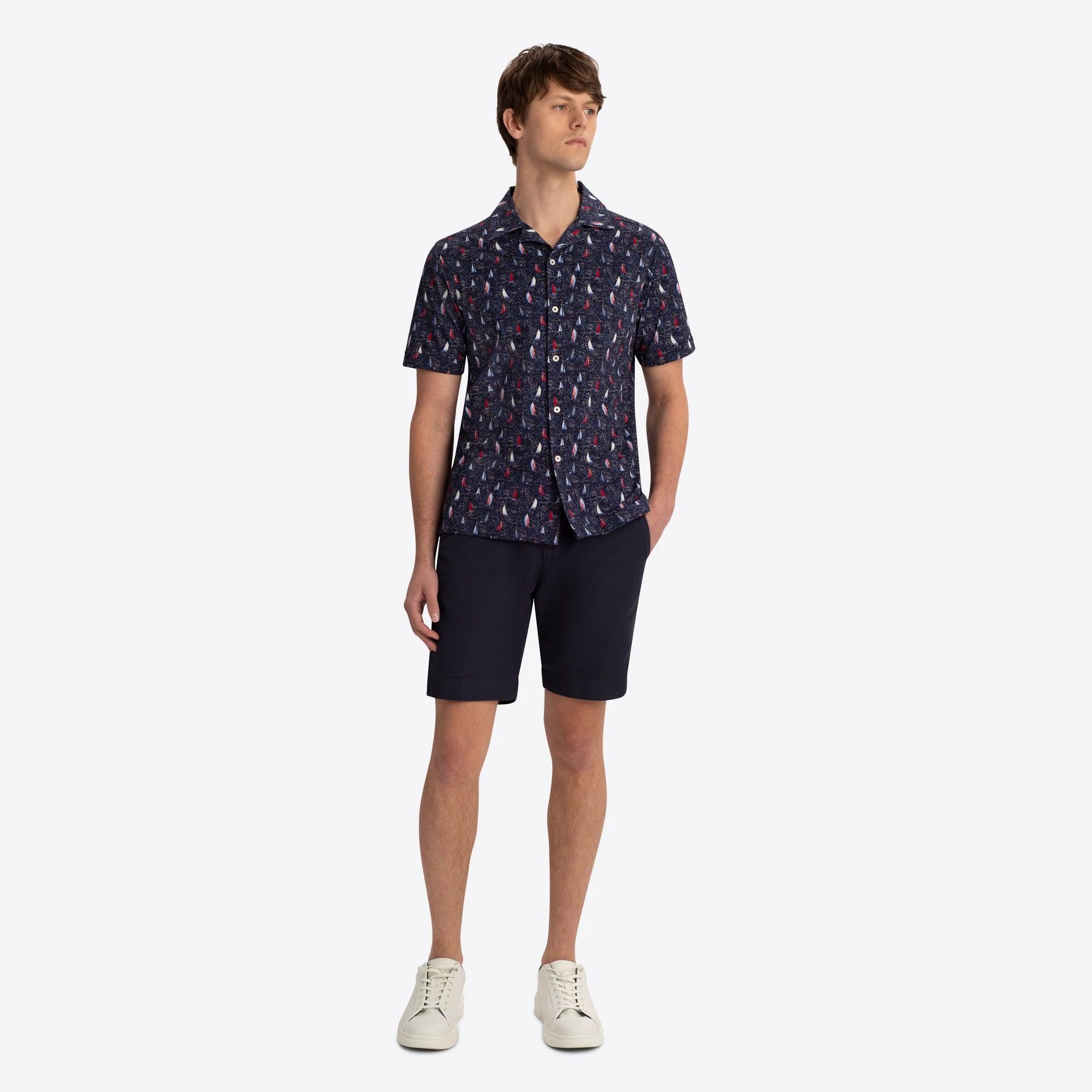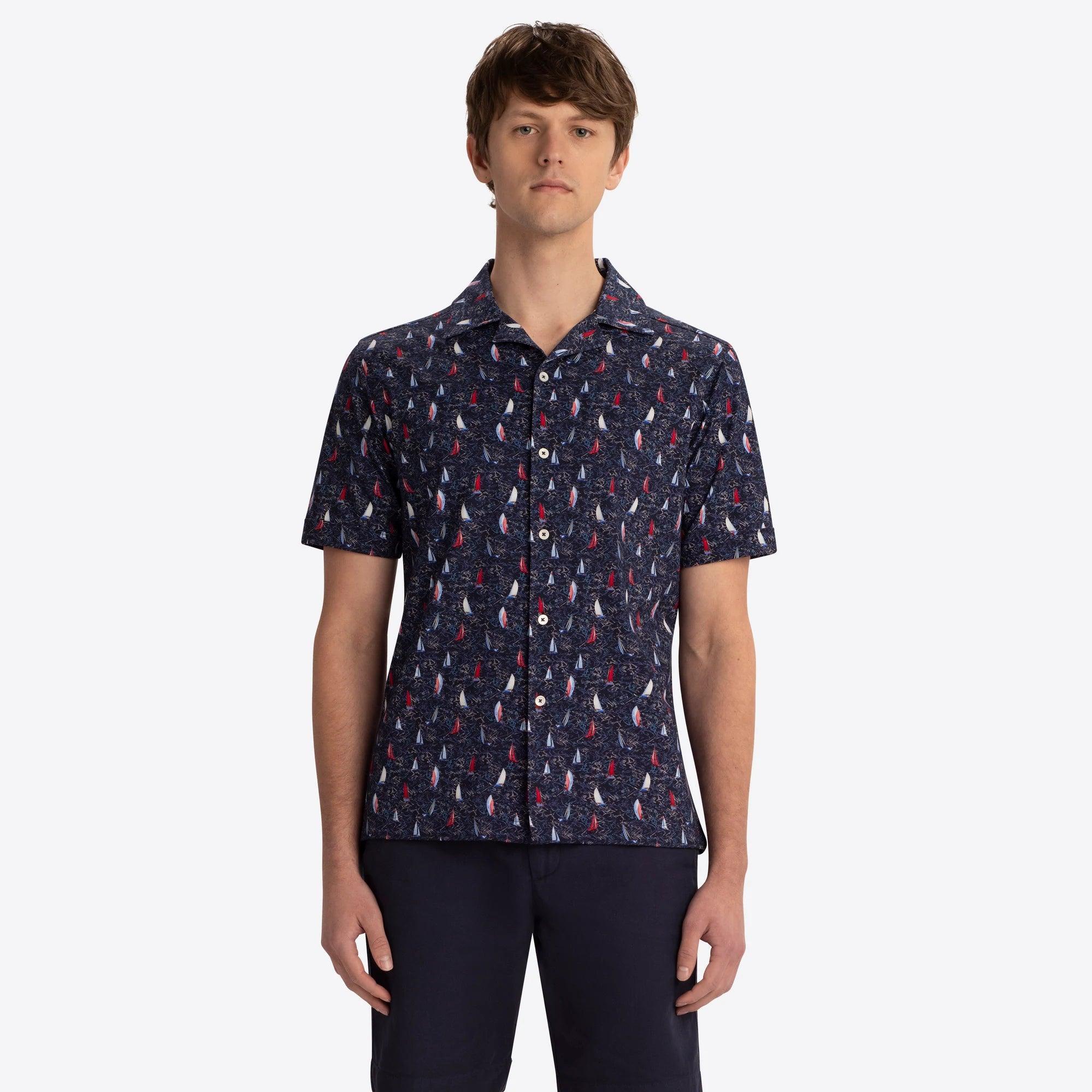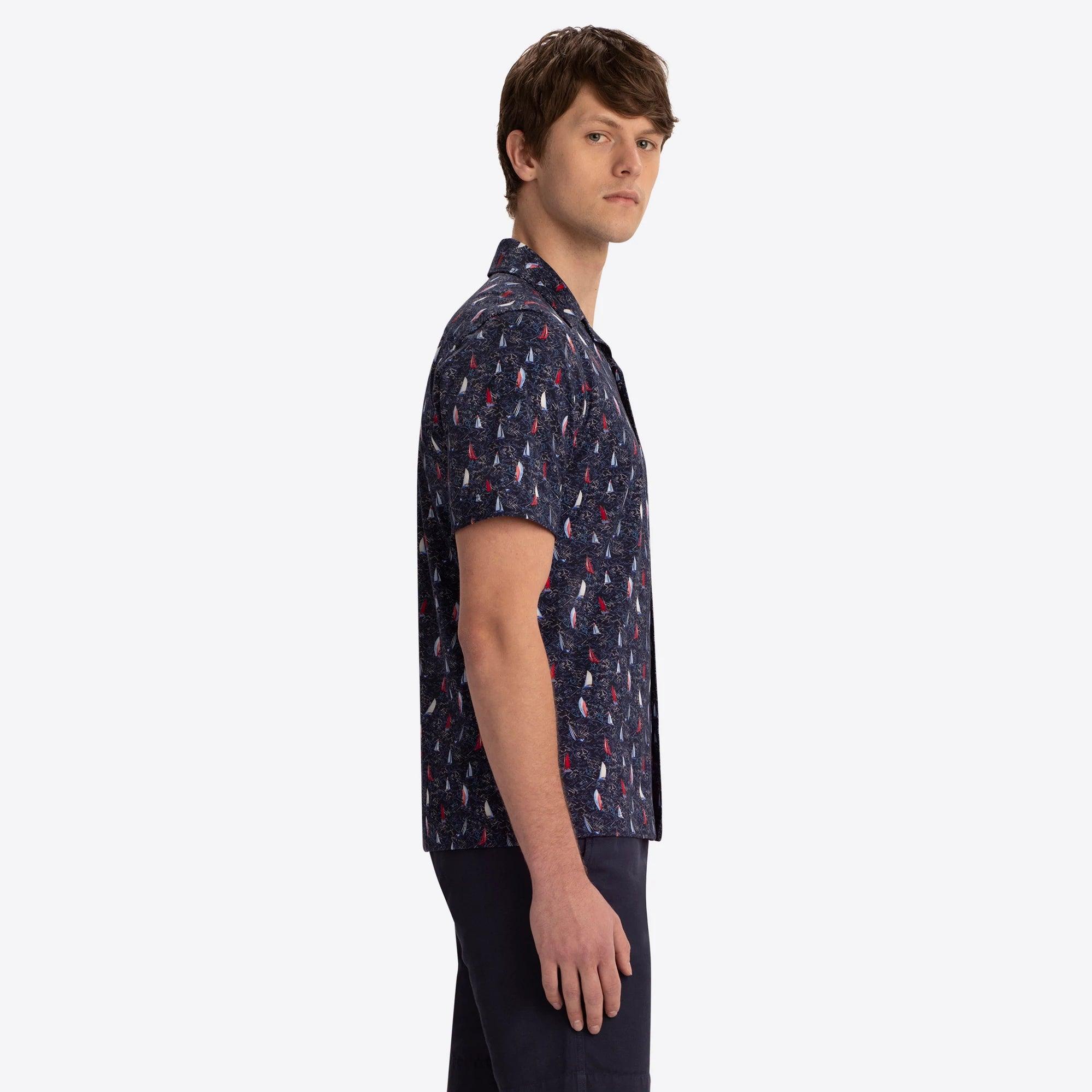Chemise à manches courtes COLE en imprimé voilier OoohCotton avec col camp et ourlet droit. OoohCotton est un coton antimicrobien doublement mercerisé, infroissable, extensible dans 8 directions, respirant, facile d’entretien, à séchage rapide et doté de caractéristiques de confort thermique.