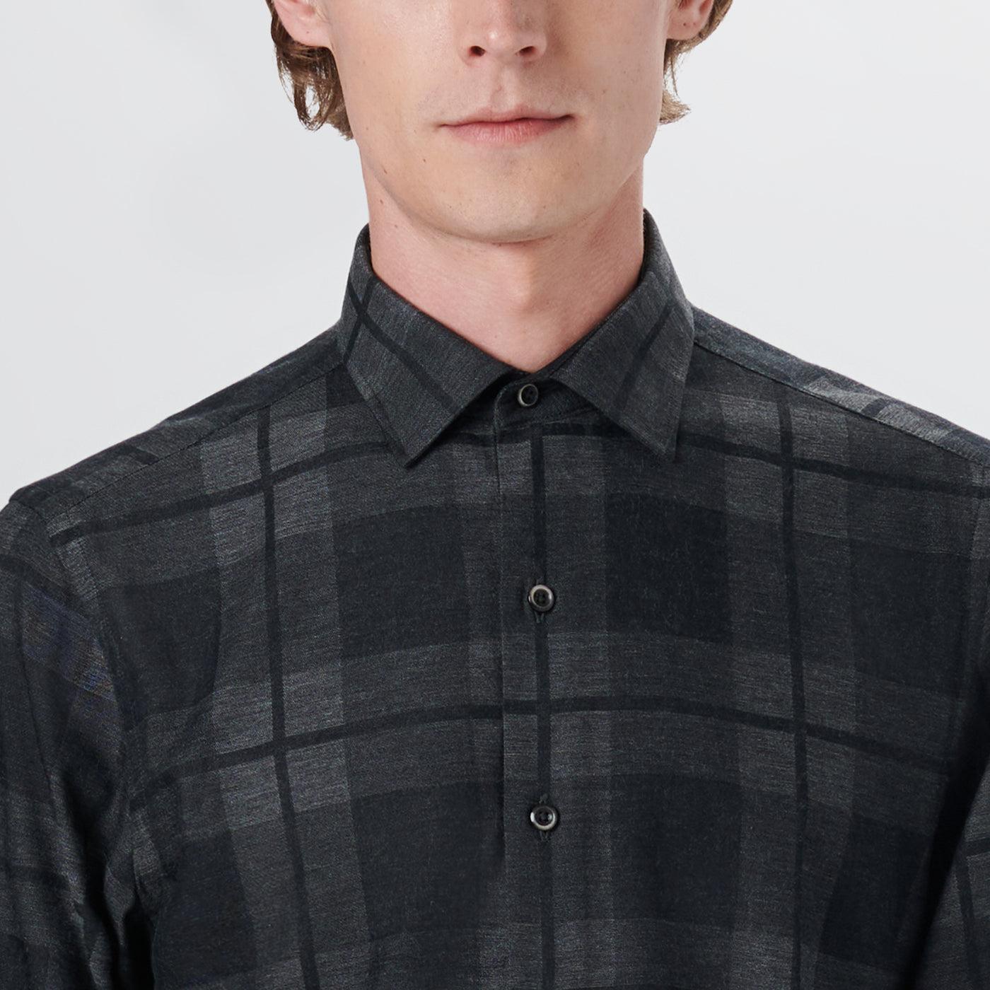 Chemise manches longues à carreaux coton/viscose Col en pointe, sans poche Modèle: AS3058L3S Fit: Shaped fit Couleur: Graphite Composition: 56% coton/ 44% viscose Lavable à la machine EnregistrerEnregistrerEnregistrerEnregistrerEnregistrerEnregistrerEnregistrerEnregistrerEnregistrerEnregistrer