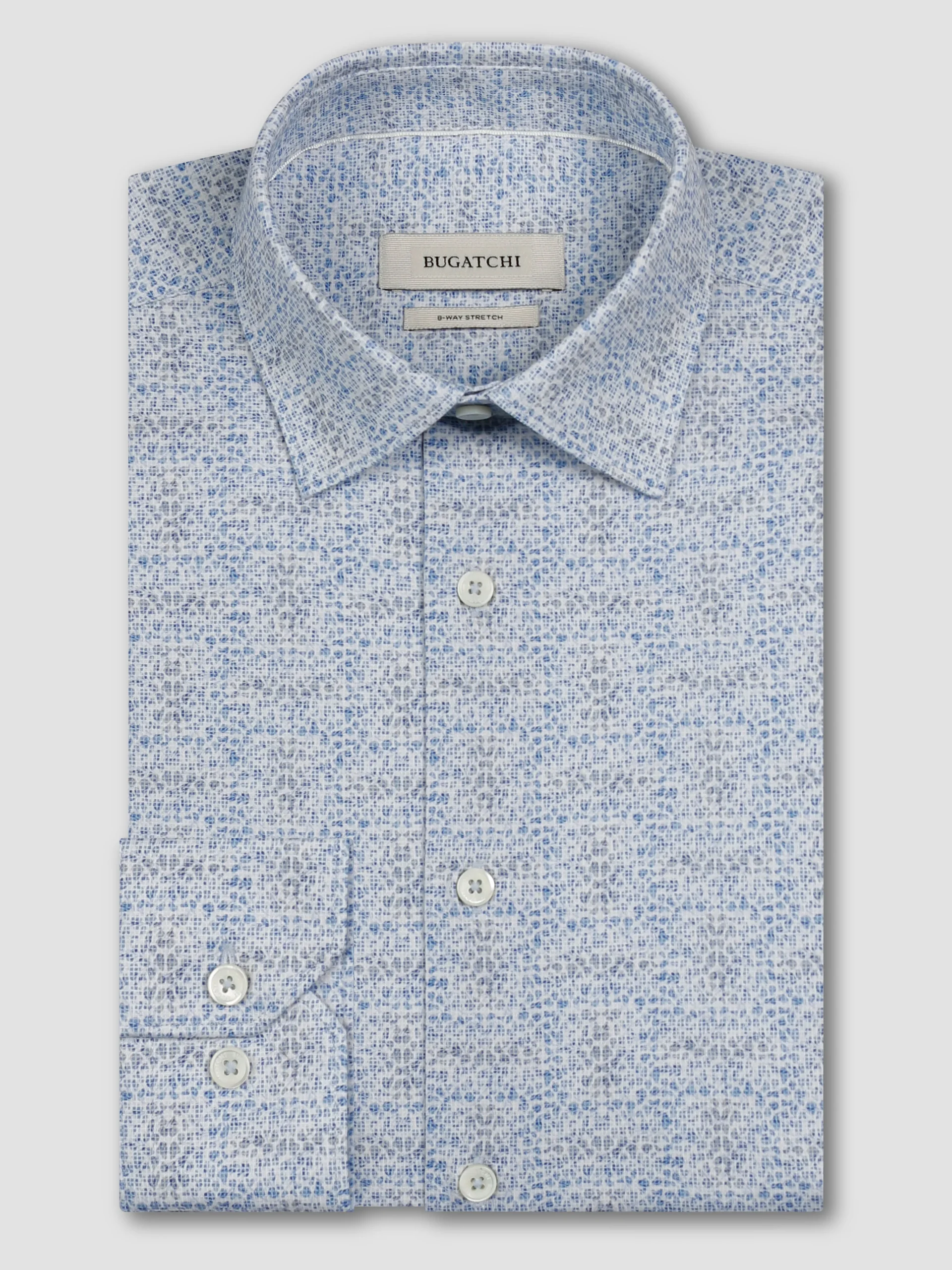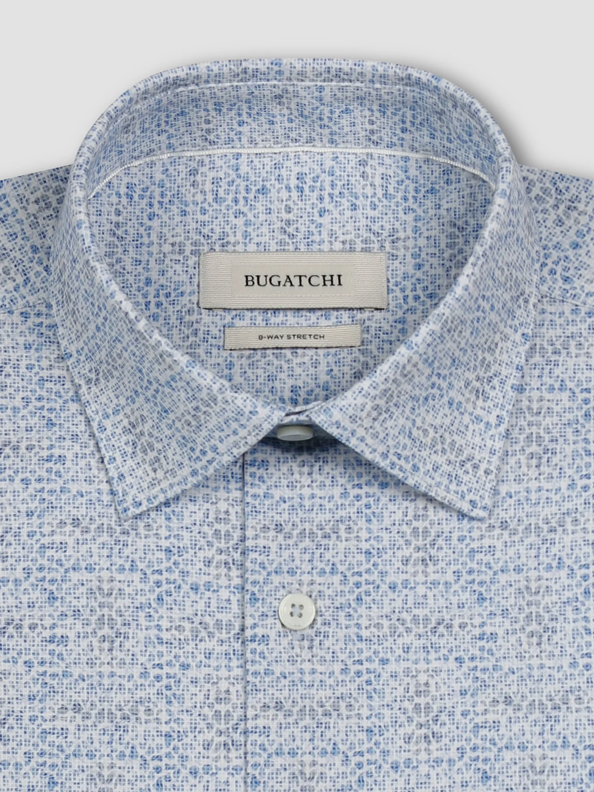 Découvrez la chemise James de Bugatchi, une pièce incontournable alliant style et confort. Confectionnée en tissu OoohCotton® premium (92% coton/8% spandex), elle offre une flexibilité exceptionnelle grâce à sa technologie 8 Way Stretch. Le motif floral subtil en bleu air apporte une touche d’élégance, tandis que le col en pointe et la coupe Shaped Fit épousent parfaitement votre silhouette. Sans poche pour une ligne épurée, cette chemise se lave facilement à la machine. Idéale pour les occasions professionnelles ou décontractées, elle combine sophistication et praticité.