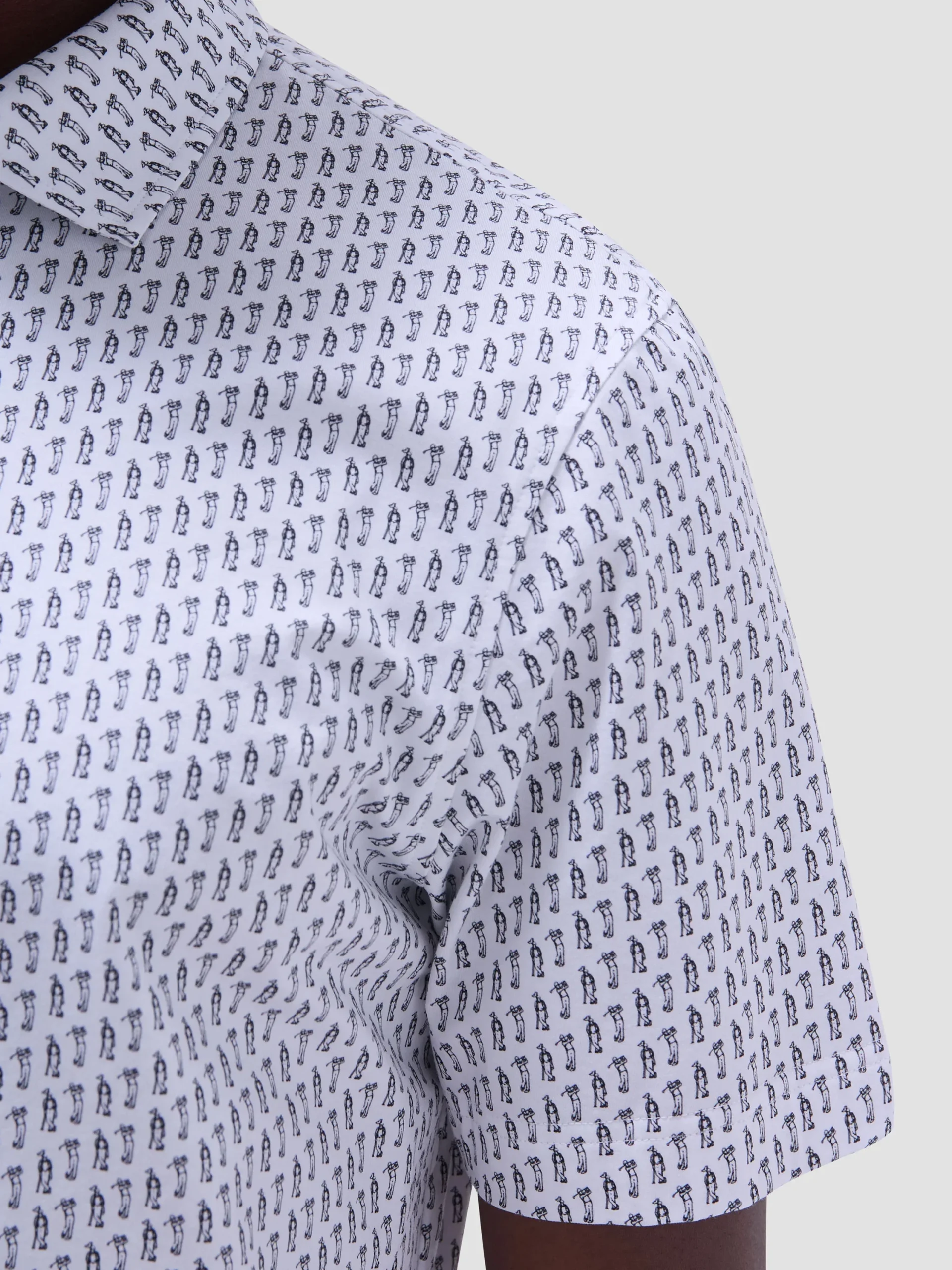 Polo à manches courtes à imprimé golfeurs VICTOR en OoohCotton avec une patte de boutonnage à trois boutons, des boutons en nacre véritable et un col dans le même tissu. OoohCotton est un coton antimicrobien doublement mercerisé, infroissable, extensible dans 8 directions, respirant, facile d’entretien, à séchage rapide et doté de caractéristiques de confort thermique.