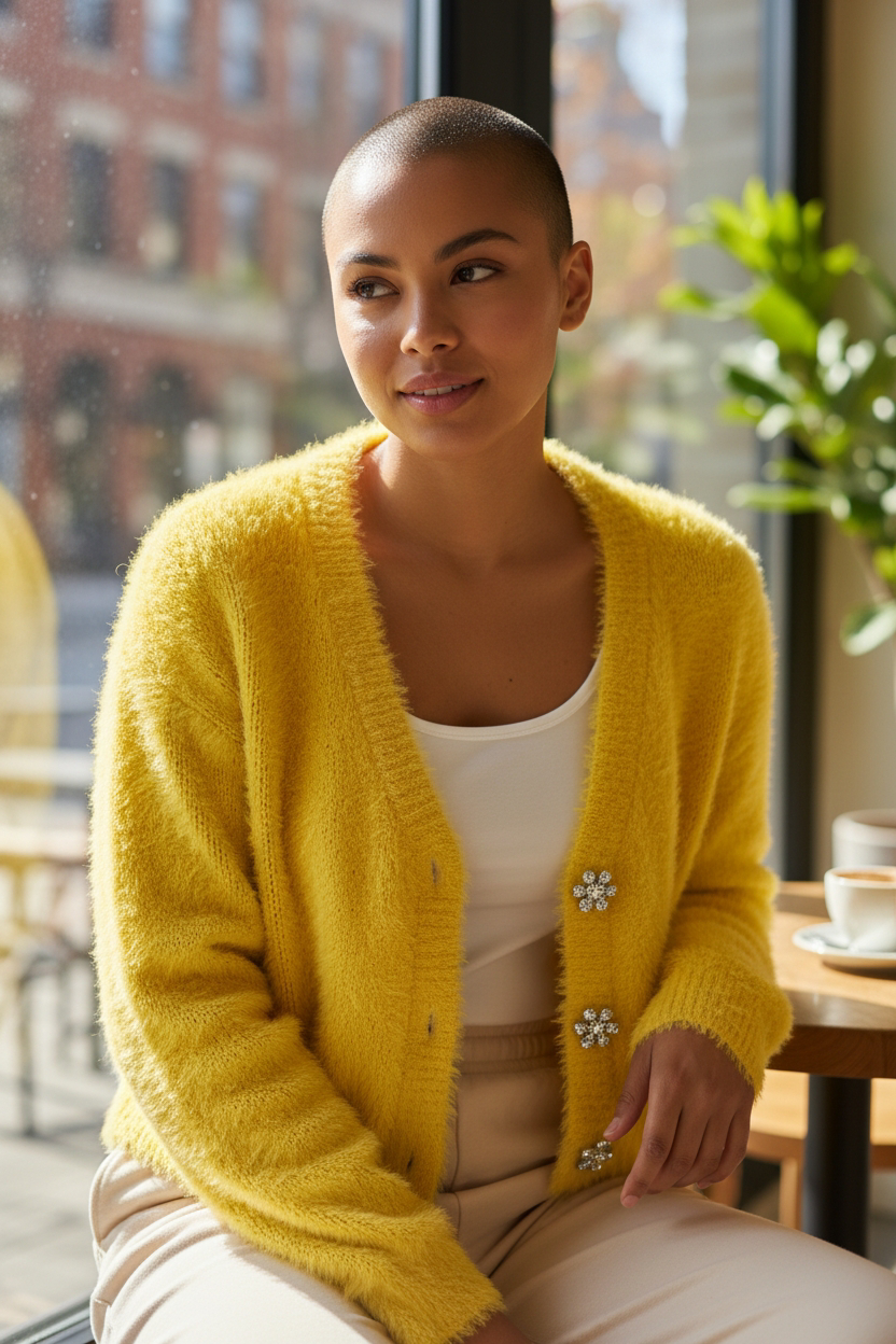 Cardigan doux, sublimée par des boutons doré a fleur raffiné