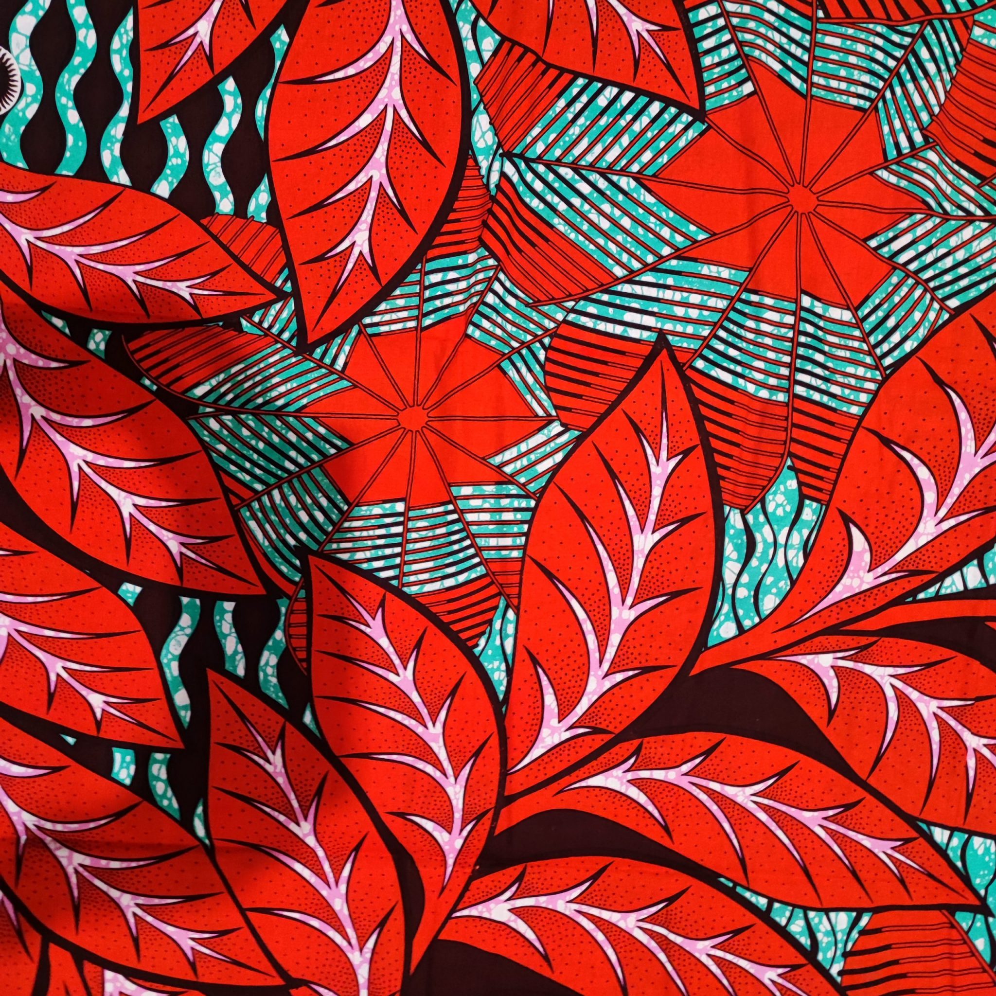 Cire wax africain, coupon wax, tissu wax 100% coton motif feuille