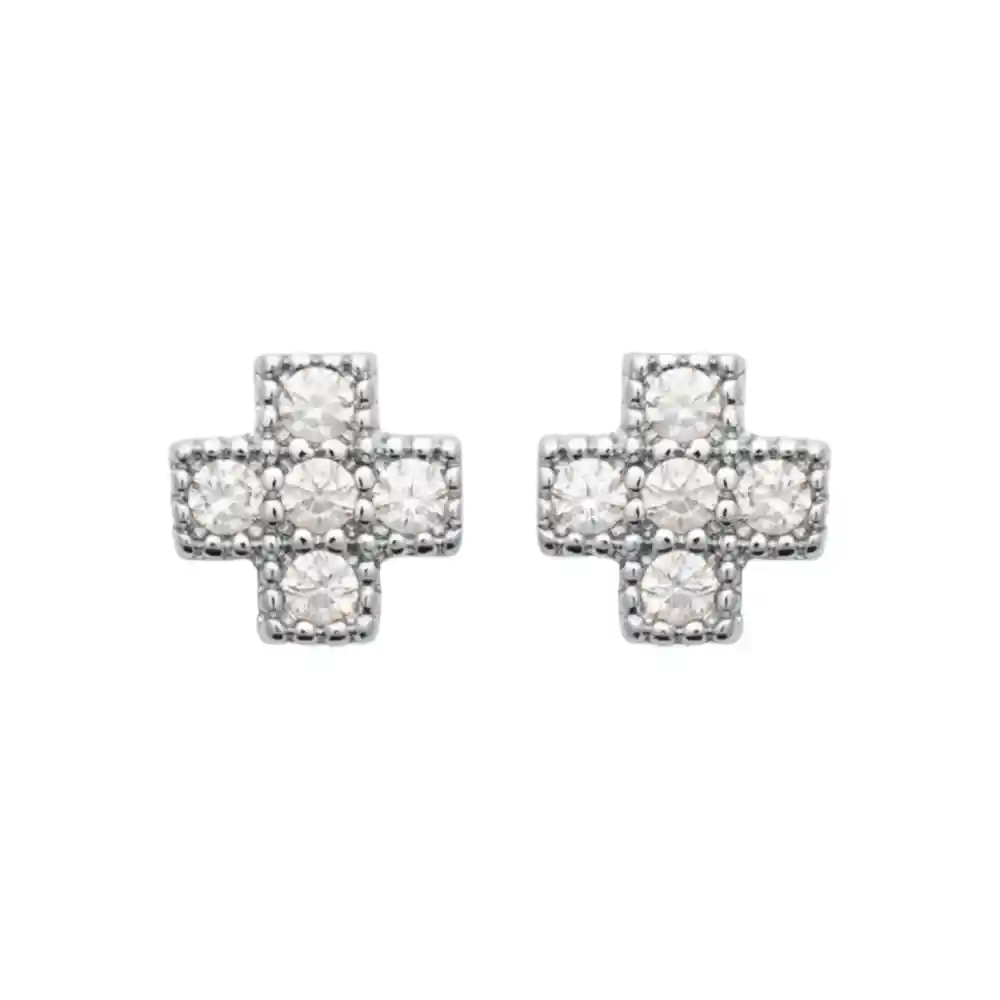 Ces clous d’oreilles en forme de croix de petite taille capturent l’essence d’un style sophistiqué tout en restant subtilement ancrés dans la discrétion. Chaque clou est délicatement orné de cristaux scintillants, méticuleusement incrustés pour offrir une brillance qui reflète la lumière avec un éclat doux mais remarquable. La structure en argent rhodié offre non seulement une résistance remarquable, mais assure également une finition lustrée qui persiste avec le temps.