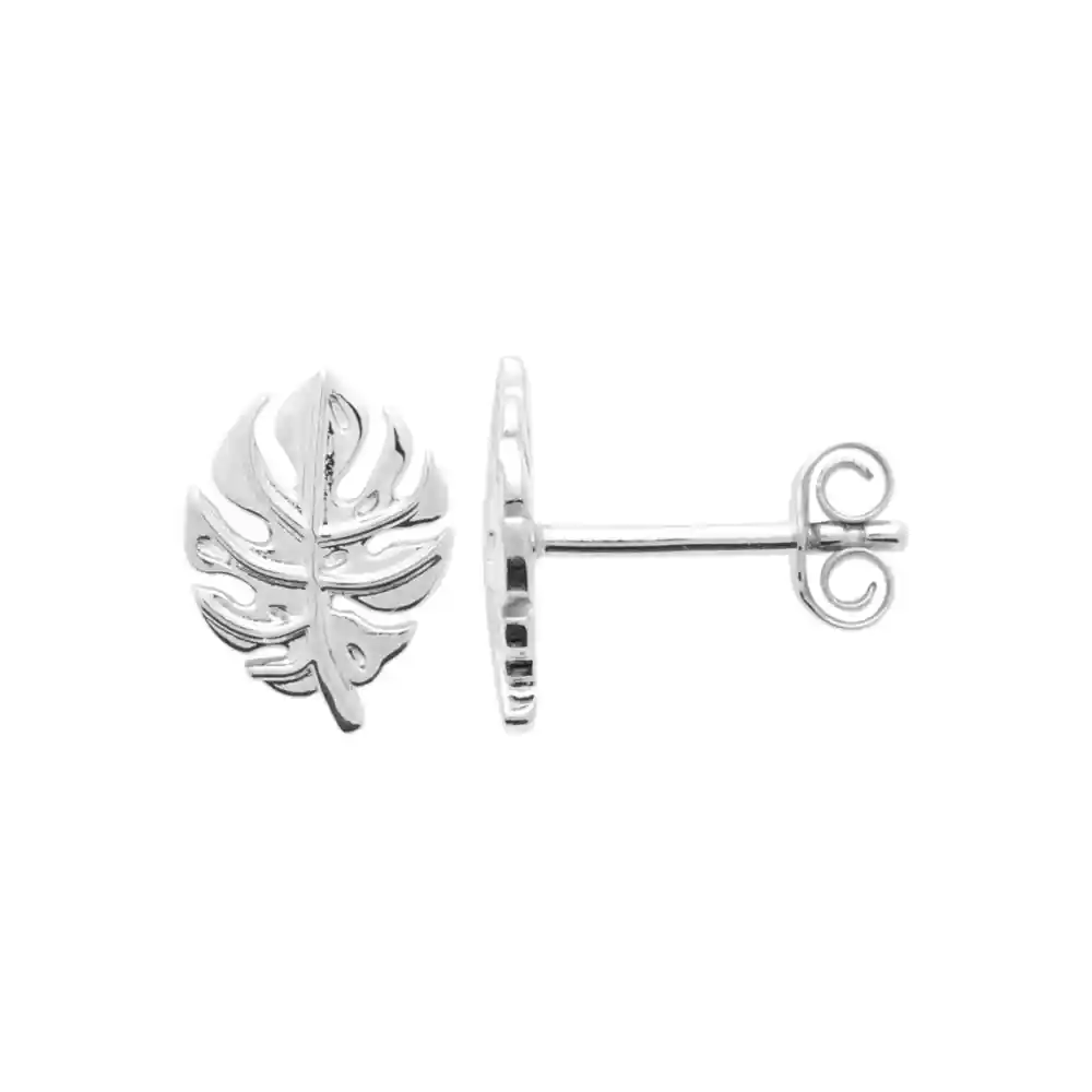 Clous d’oreilles petite feuille argent rhodié