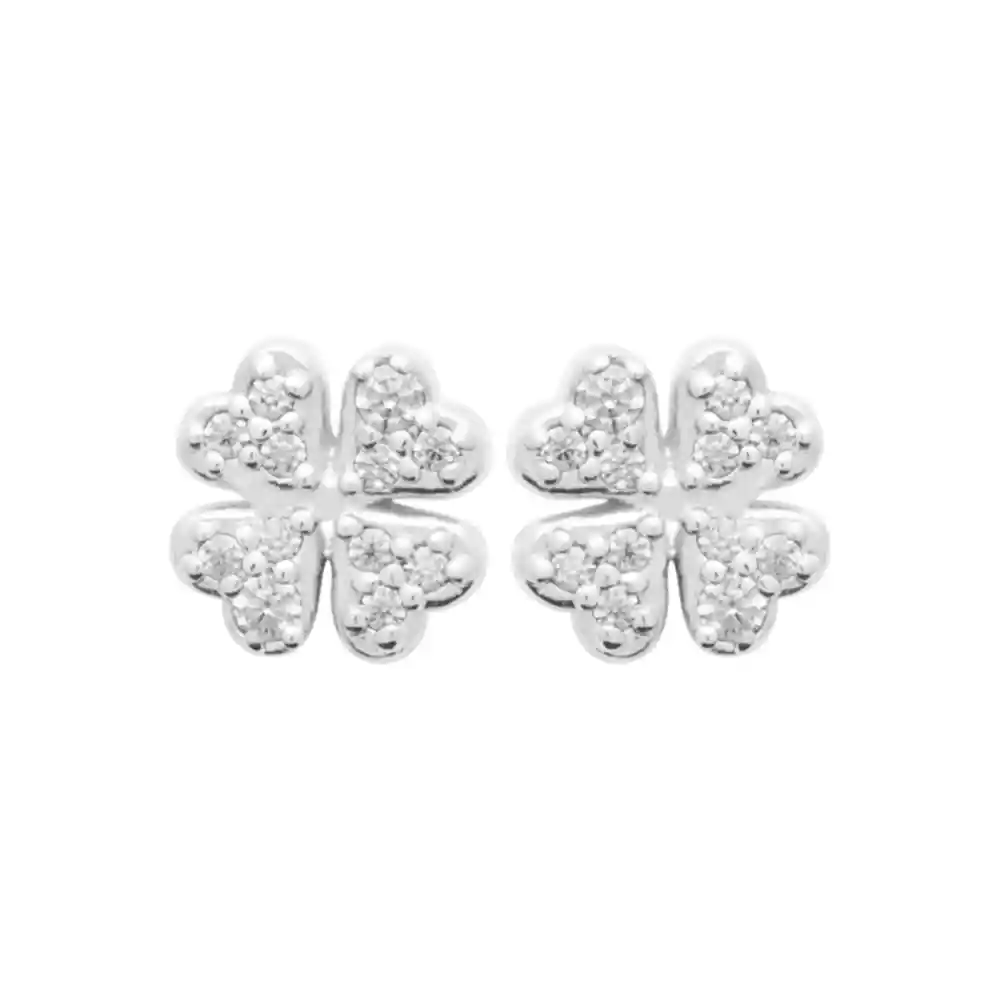 Clous d’oreilles trèfle 4 feuilles argent rhodié