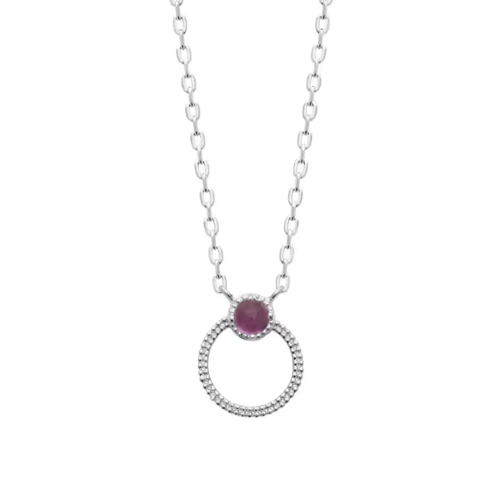 Chaque élément de ce collier en améthyste a été pensé pour révéler votre féminité et votre sens du détail. Le cercle scintillant est une métaphore de perfection et de continuité, tandis que l’améthyste est souvent associée à la sagesse et à la force intérieure. Fabriqué en argent rhodié, le collier promet non seulement une brillance durable mais aussi une résistance accrue à l’usure quotidienne.